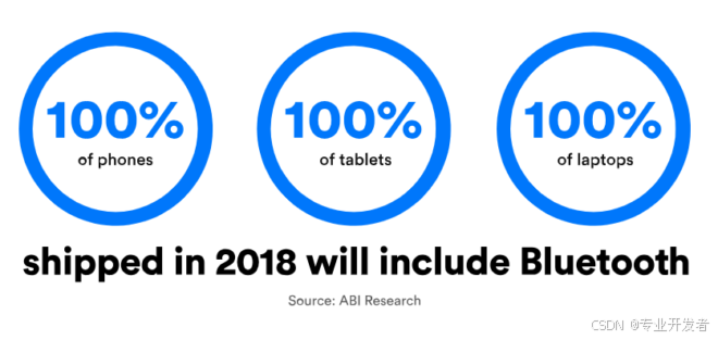 根据 ABI 研究数据,2018 年出货的手机、平板和笔记本电脑,100% 都搭载了蓝牙技术。而由于蓝牙功能已是主流消费设备的标配,你可以确定:无论你开发的是音箱、健康设备、车载娱乐系统,还是智能家居技术,都能借助智能手机、平板或笔记本的内置互操作性得到支持。这种互操作性标准,能确保你的创新产品在当下和未来都能与消费设备兼容。