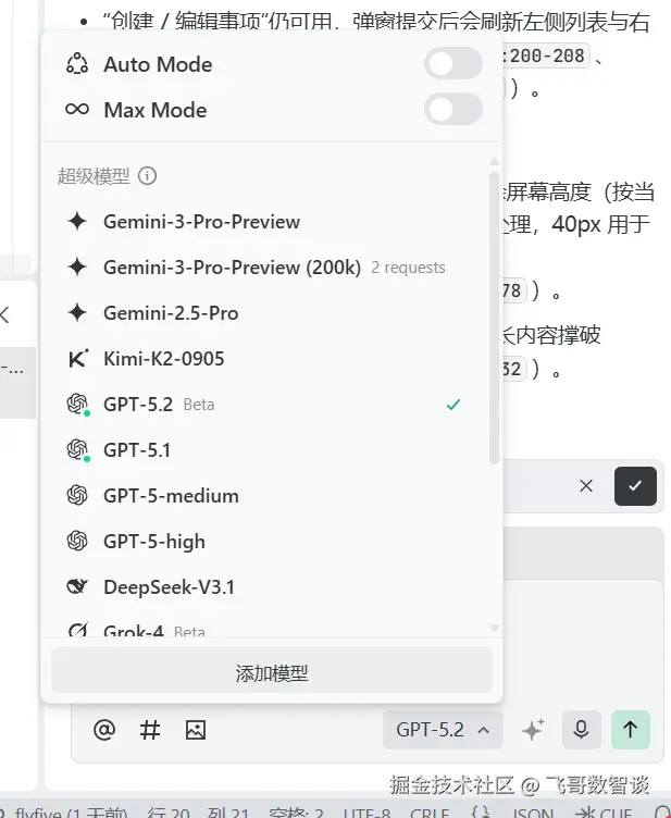虽然,外界对 GPT-5.2 的评价褒贬不一,但我感觉在编程场景中,表现真的很棒,非常值得大家亲自试试。