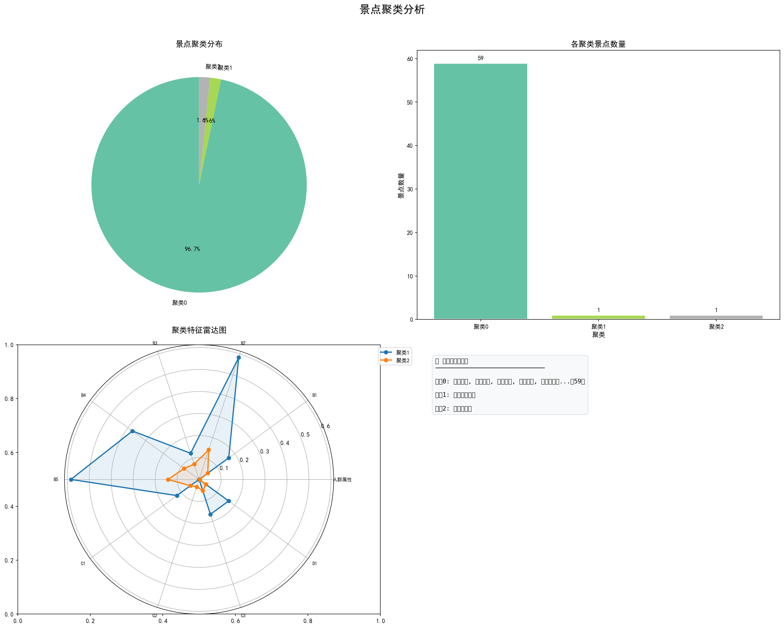 │ │ - 词云图 - 地点聚类雷达图 - 标签共现矩阵 │ │