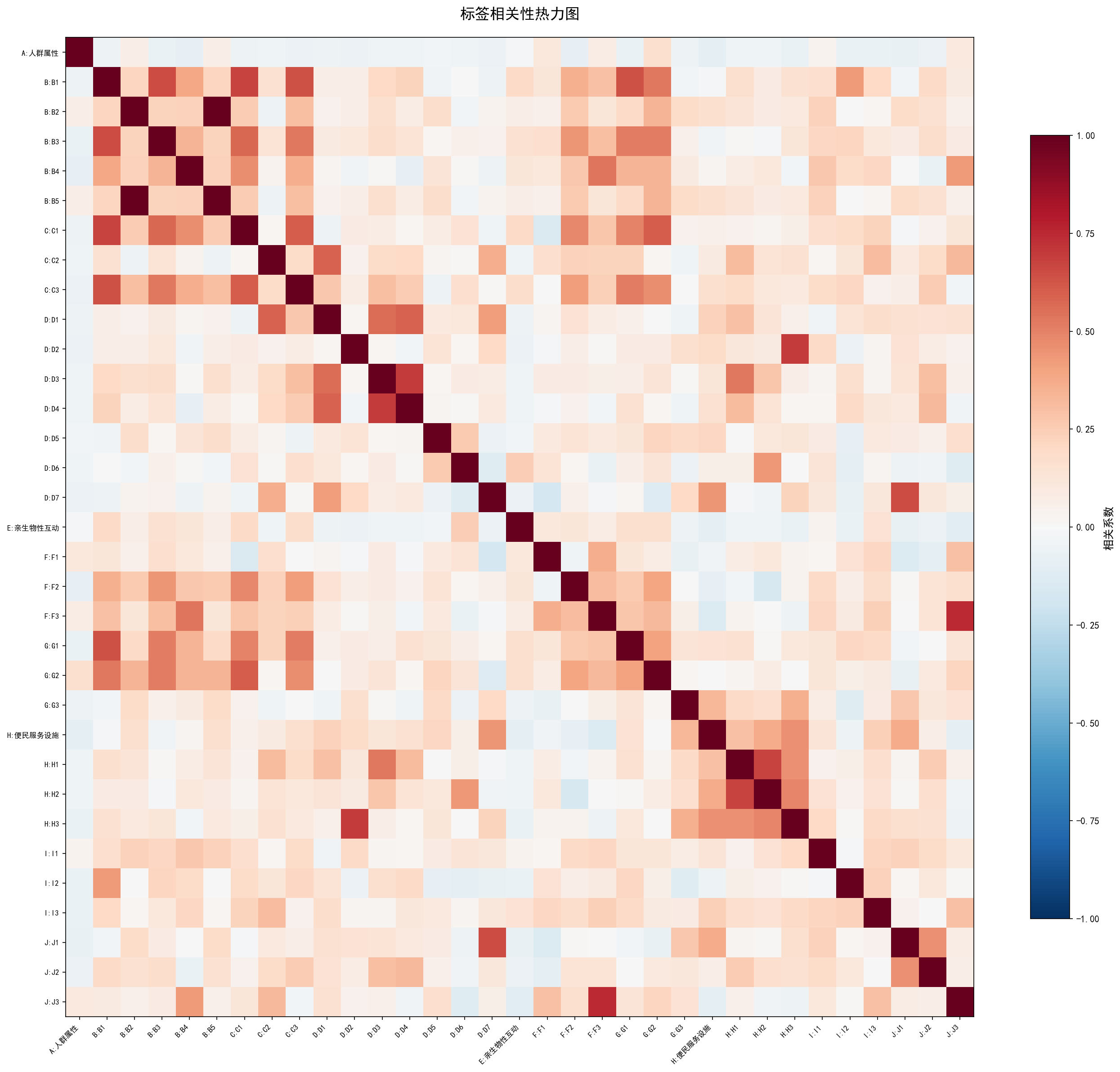 - F3(季相感知)↔ J3(访问频率):r=0.75(正相关,季节性明显)