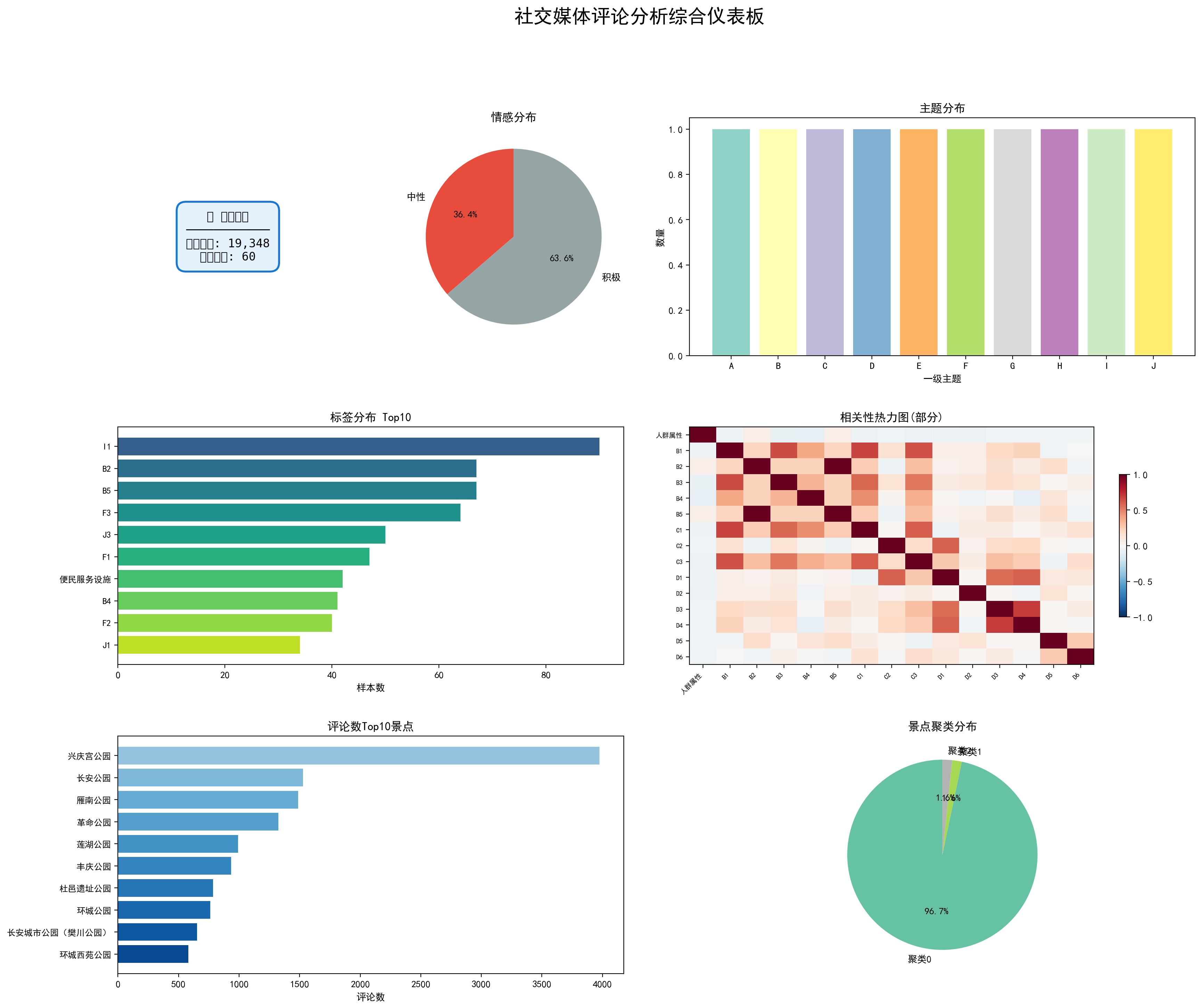 │ │ - 综合仪表板 - 主题分布 - 情感分析 - 相关性热力图 │ │