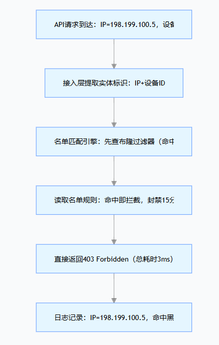 - 前置过滤:在接入层完成名单匹配,无需进入特征提取、大模型推理等复杂流程,直接决策(拦截 / 放行),降低系统负载;