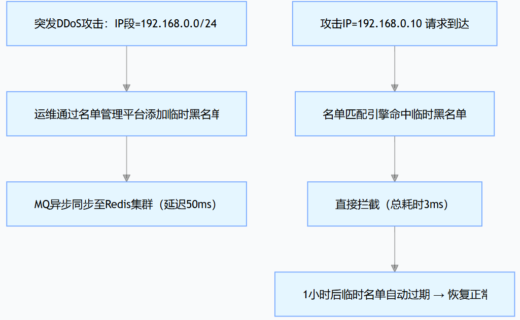 关键价值:应对突发攻击时,无需修改风控策略或重启系统,通过临时名单快速处置,降低攻击影响。