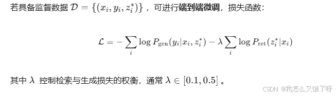 - ( P gen(y∣x,z) ):生成模型在给定查询与上下文下的条件分布