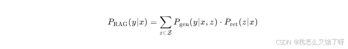 该公式揭示了RAG的核心:将生成过程建模为在检索空间上的边缘化期望,从而把"知识检索"与"语言生成"统一在一个概率框架下。