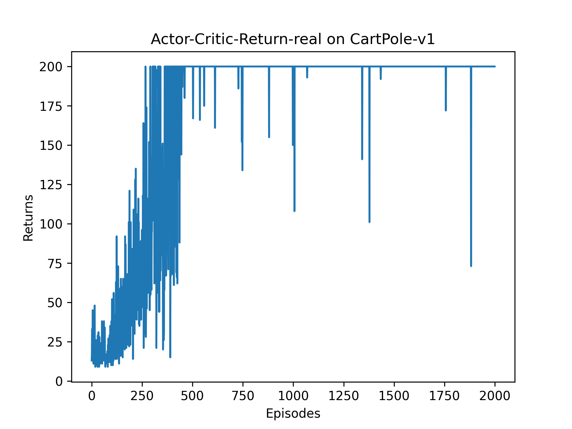 基于cart-pole环境,实验AC算法的效果,并于策略梯度比较。