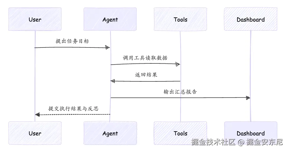 | 图示说明:代理通过工具调用与结果反馈形成闭环,构成完整的执行路径。 |