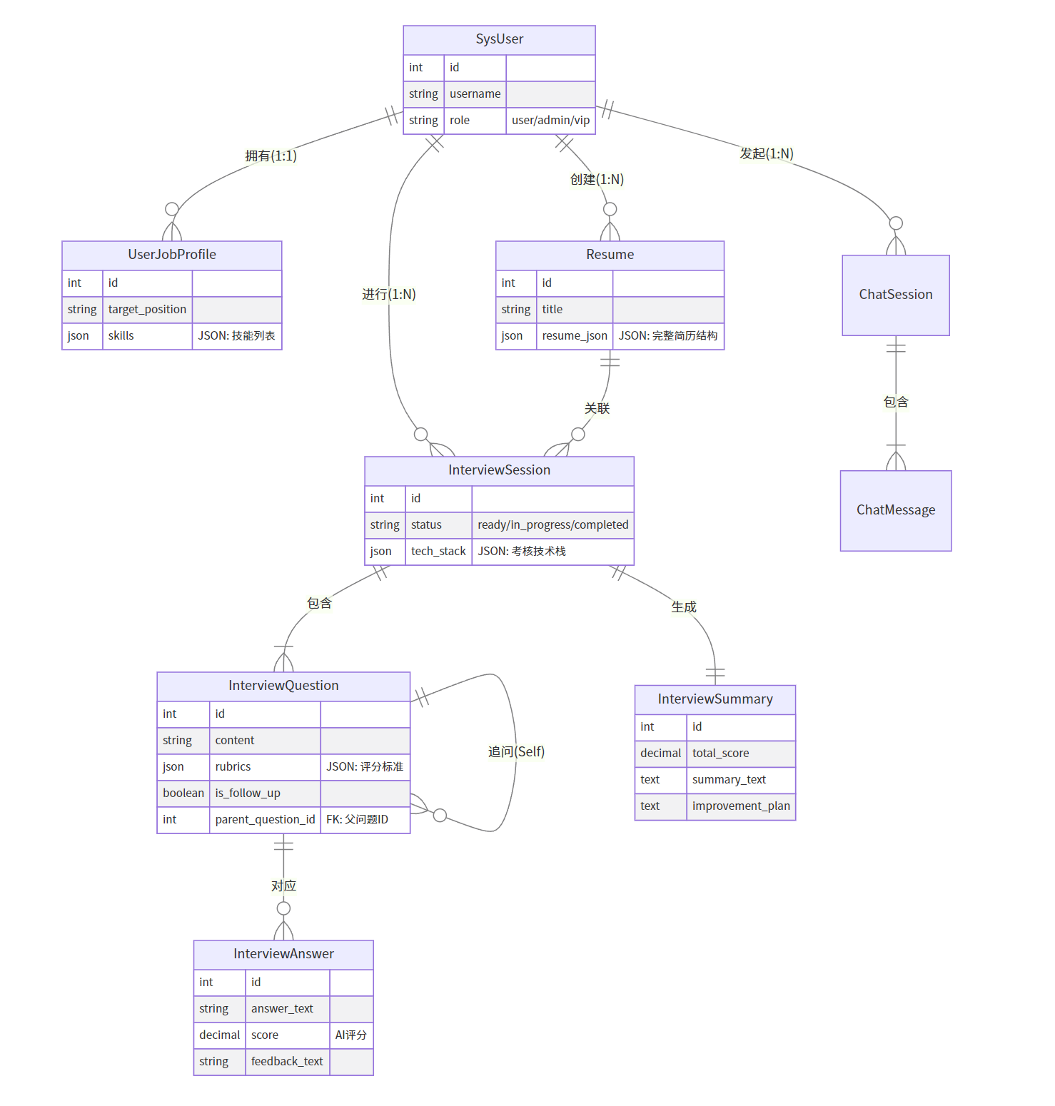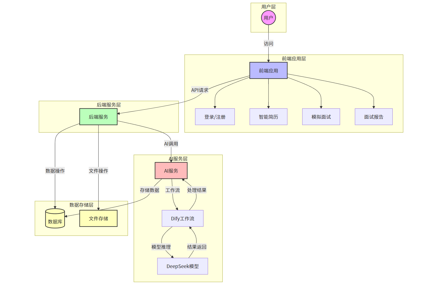 数据持久层 (Data Layer): MySQL 数据库存储用户信息和面试记录