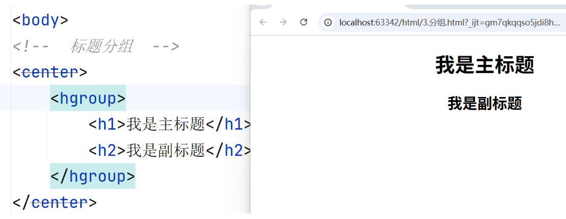 hgroup 用来将标题分组,可以将一组相关的标题 同时放入从样式上没有区别但是从语法上就有了关系
