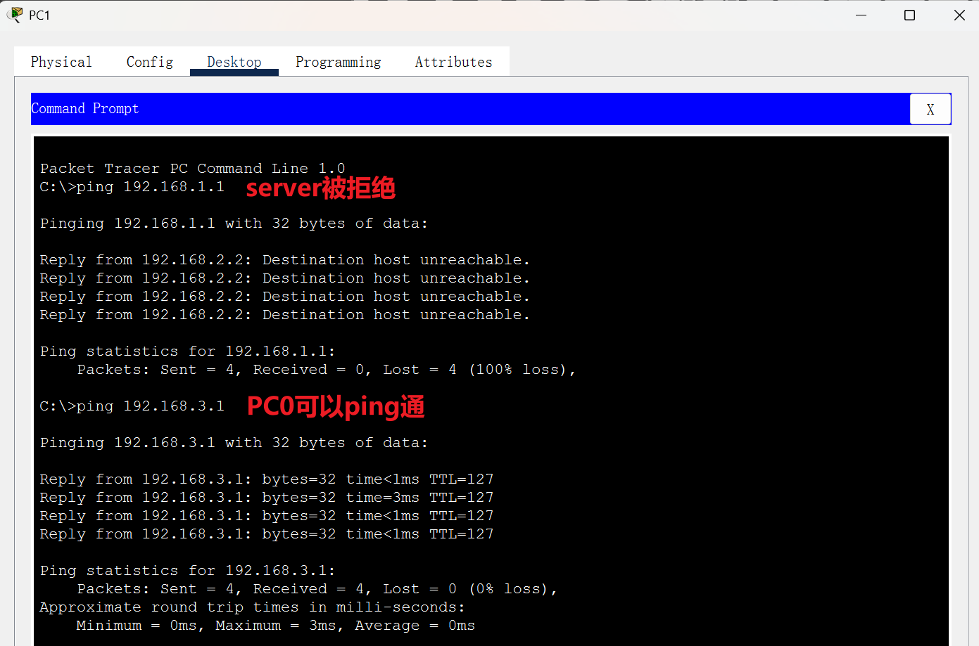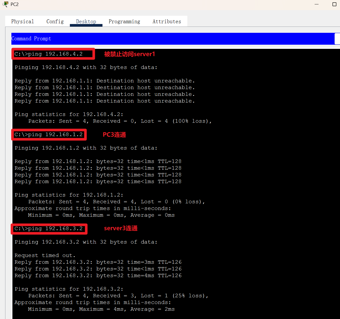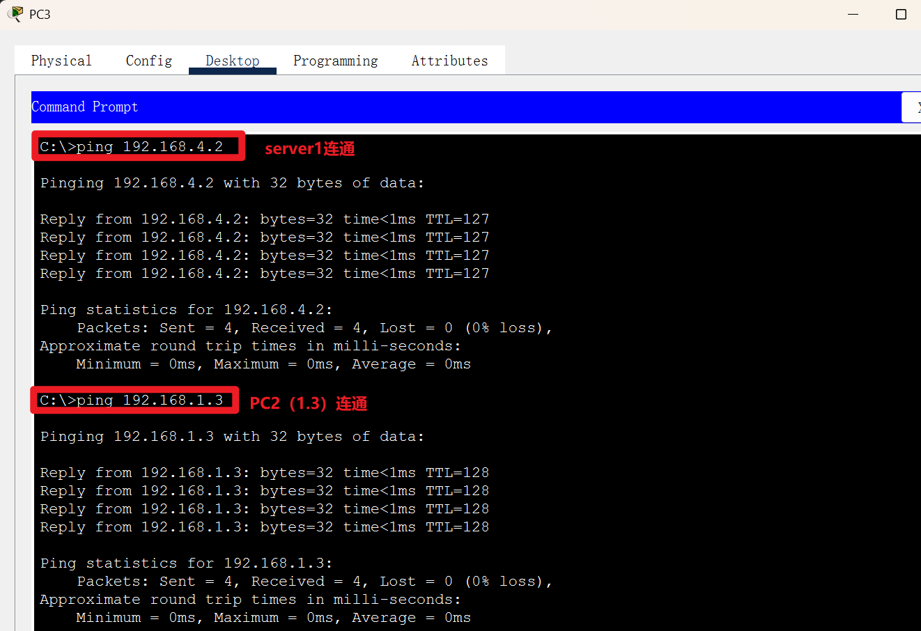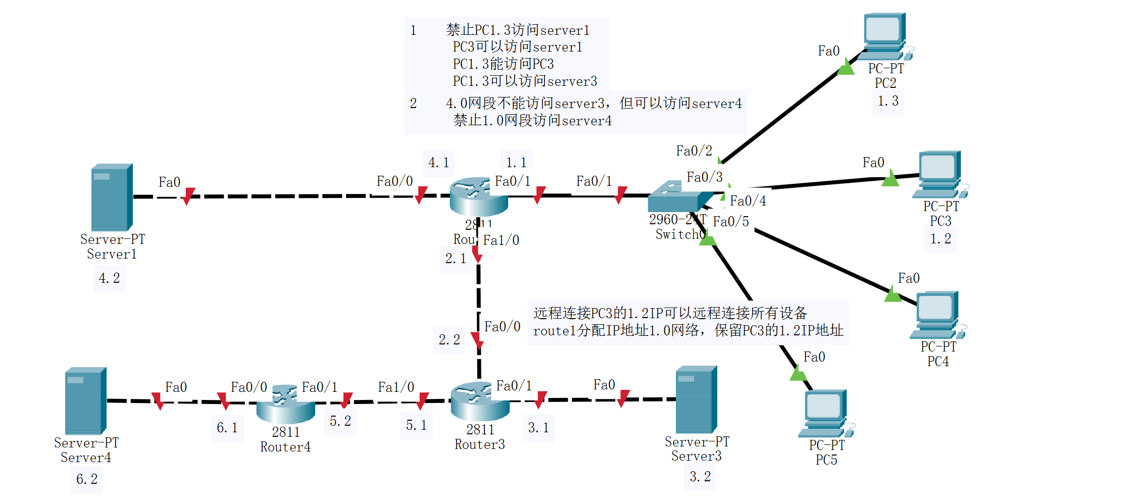 1)远程连接PC3的1.2IP可以远程连接所有设备
