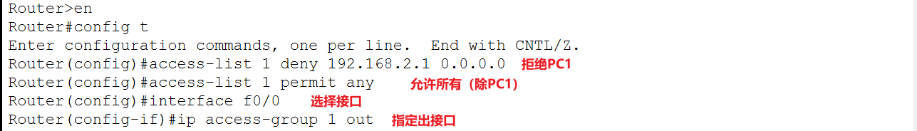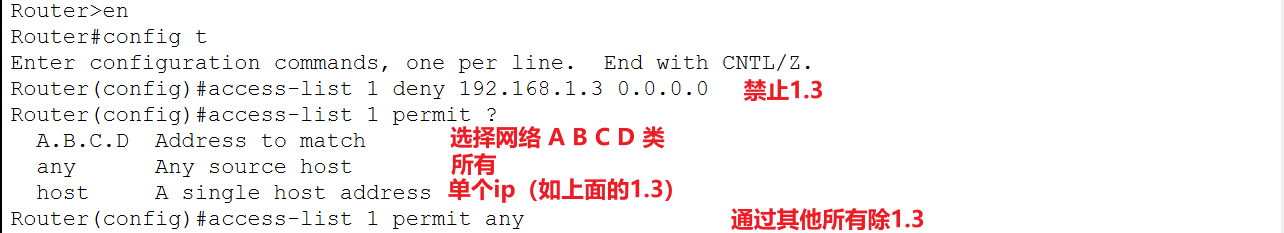 access-list 1 允许|拒绝 192.168.1.1 0.0.0.255
