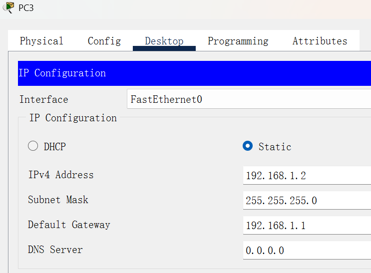 route1分配IP地址1.0网络,保留PC3的1.2IP地址