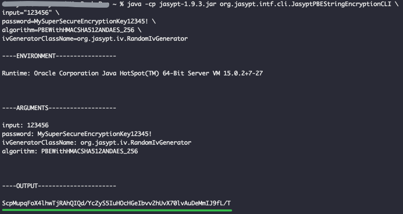 java -cp jasypt-1.9.3.jar org.jasypt.intf.cli.JasyptPBEStringEncryptionCLI \