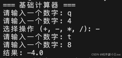 operation = input("请正确选择操作 (+, -, *, /): ")