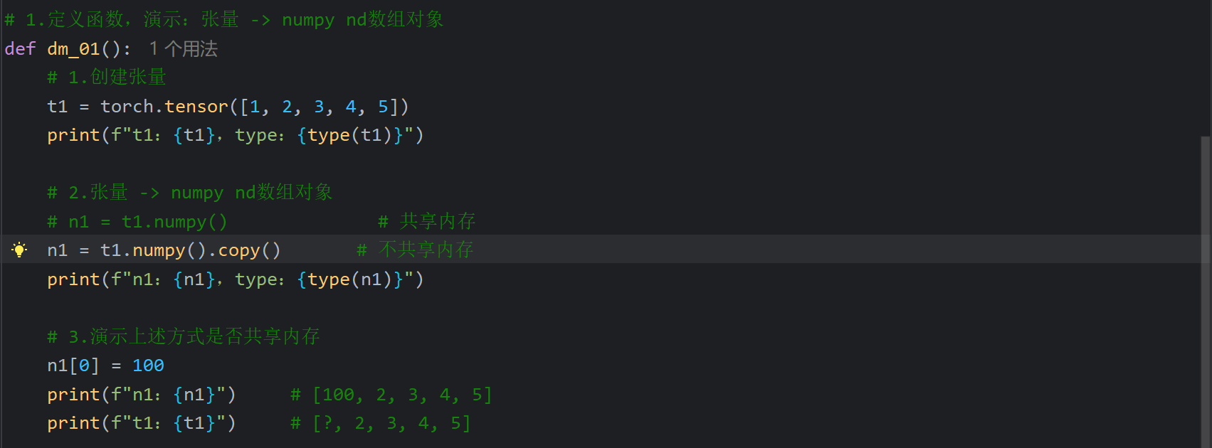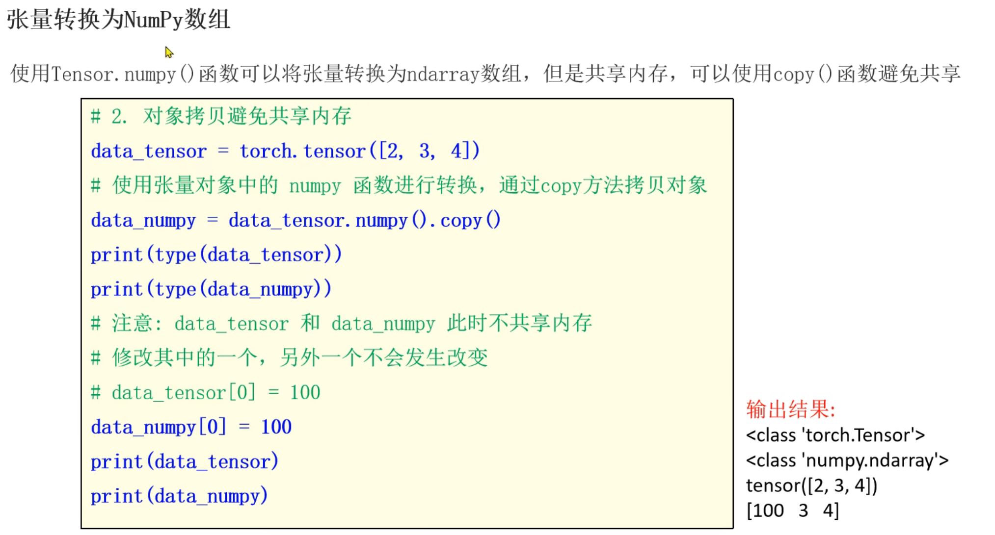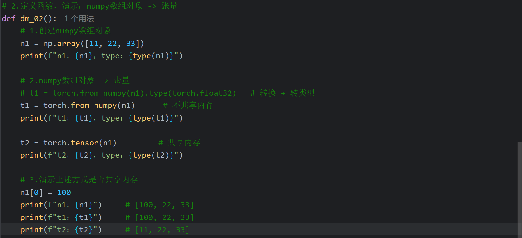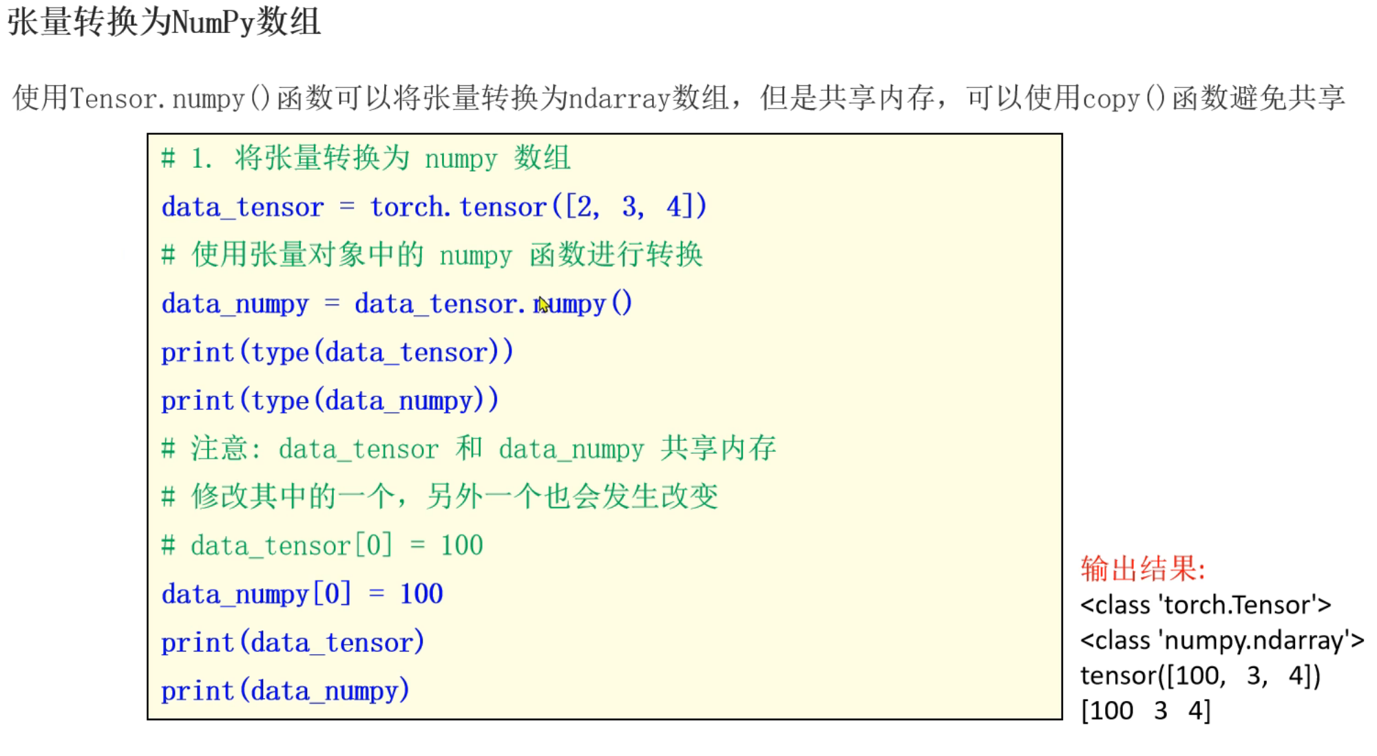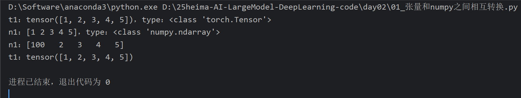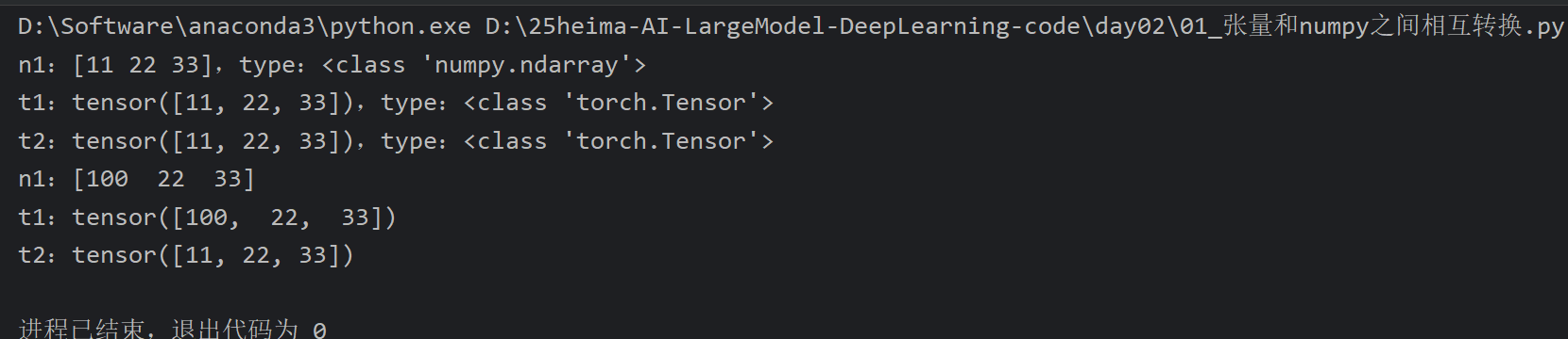 2、张量和Numpy之间相互转换