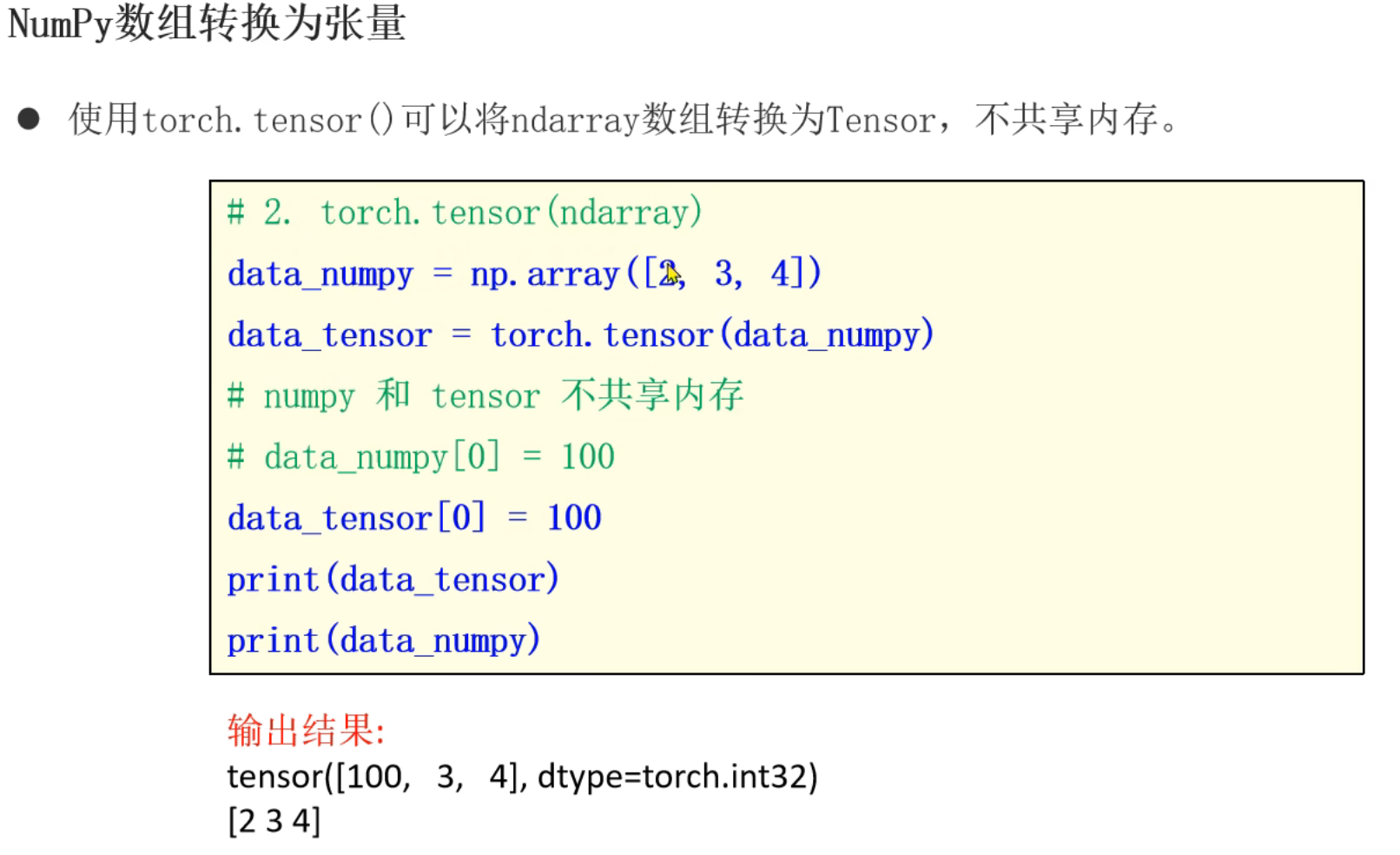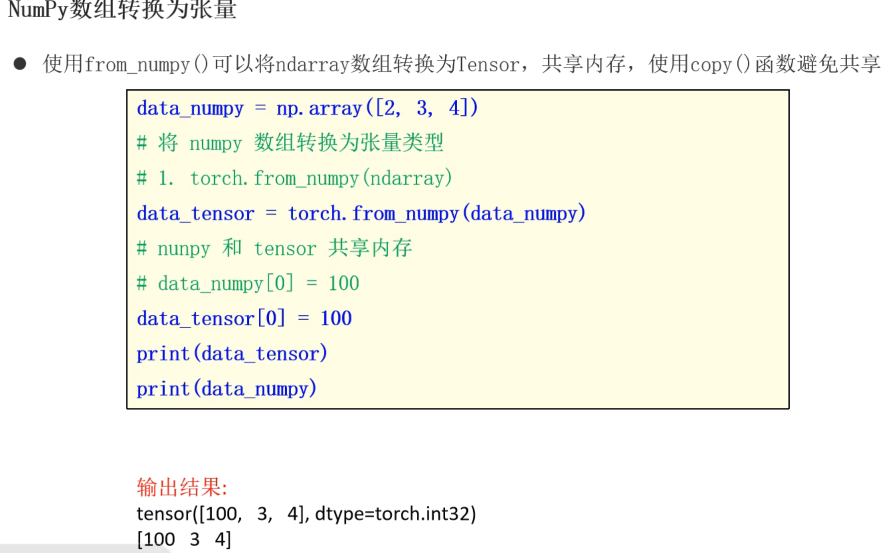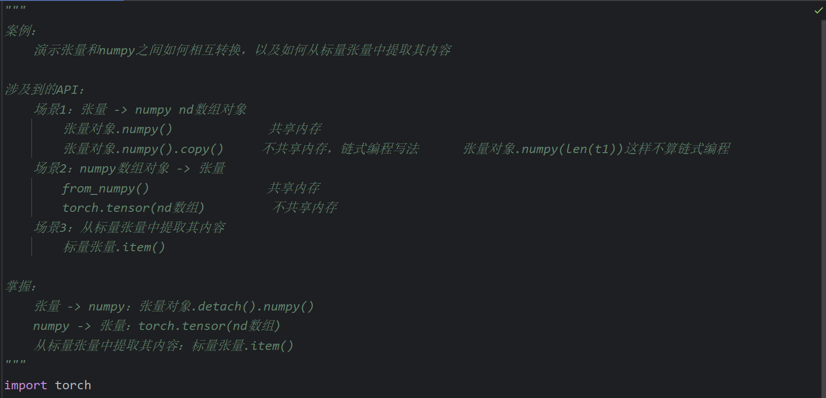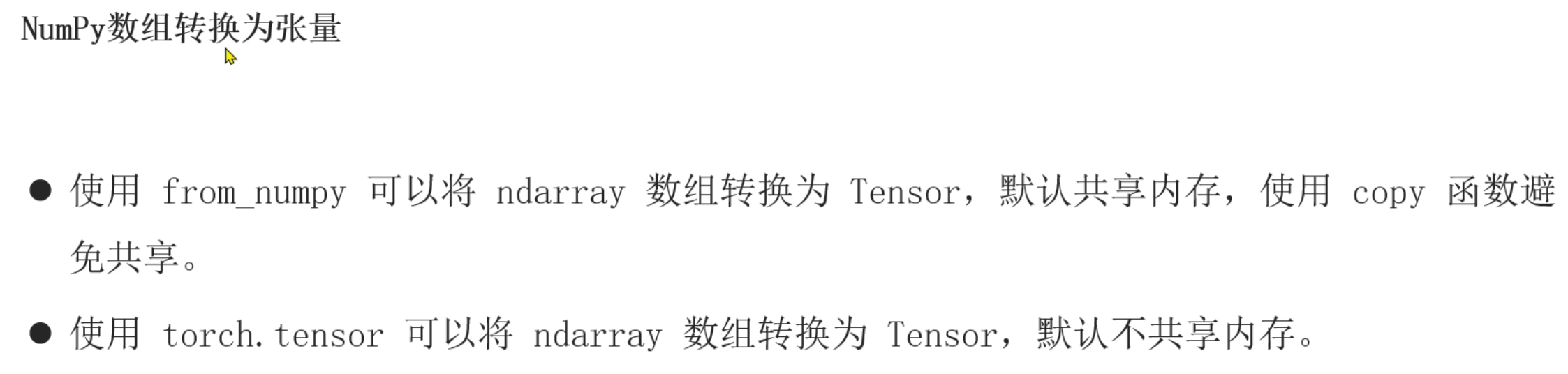 2、张量和Numpy之间相互转换