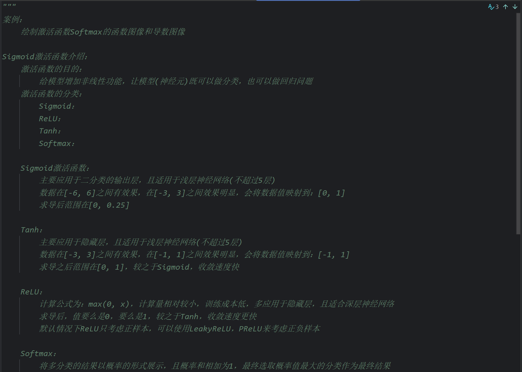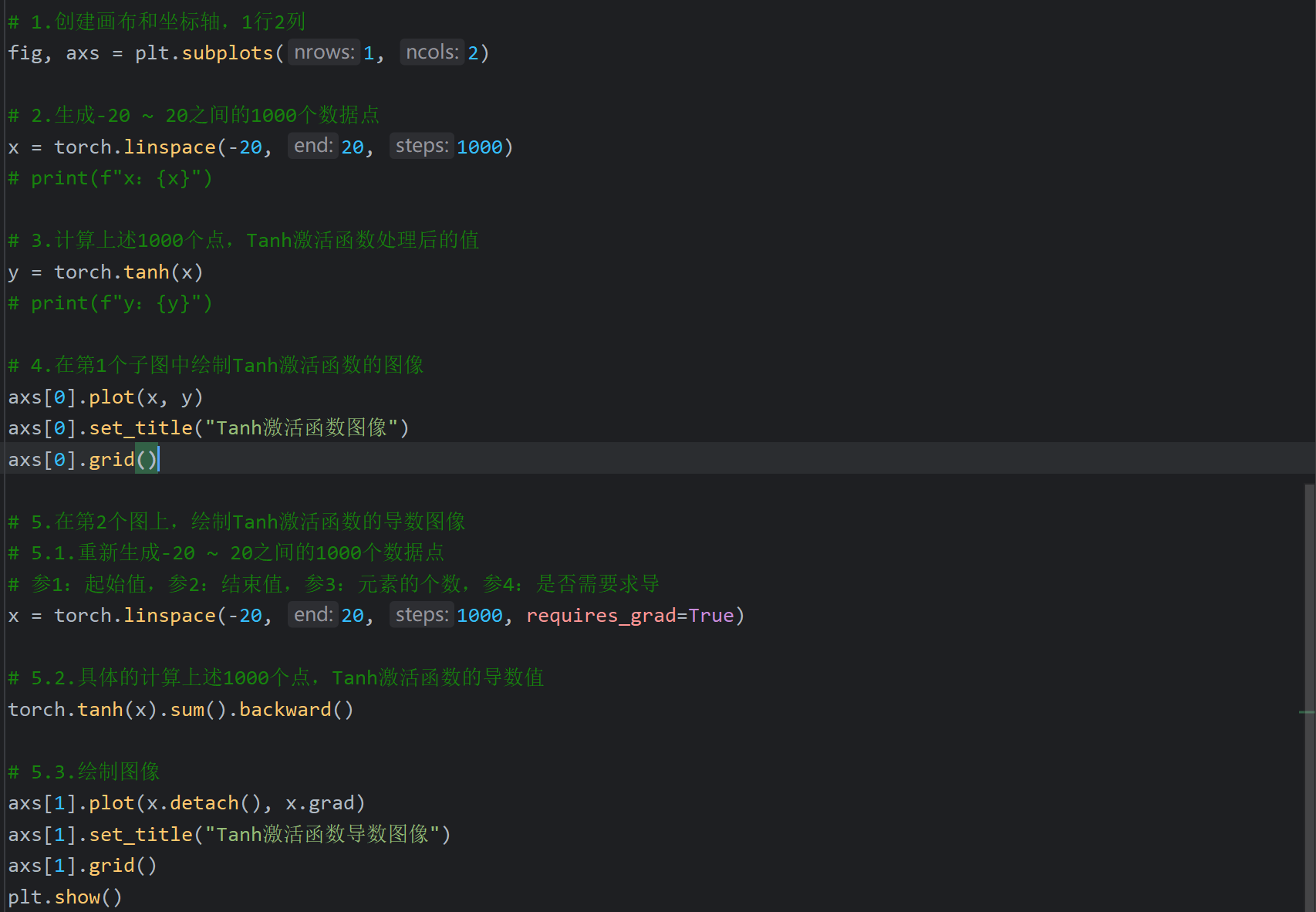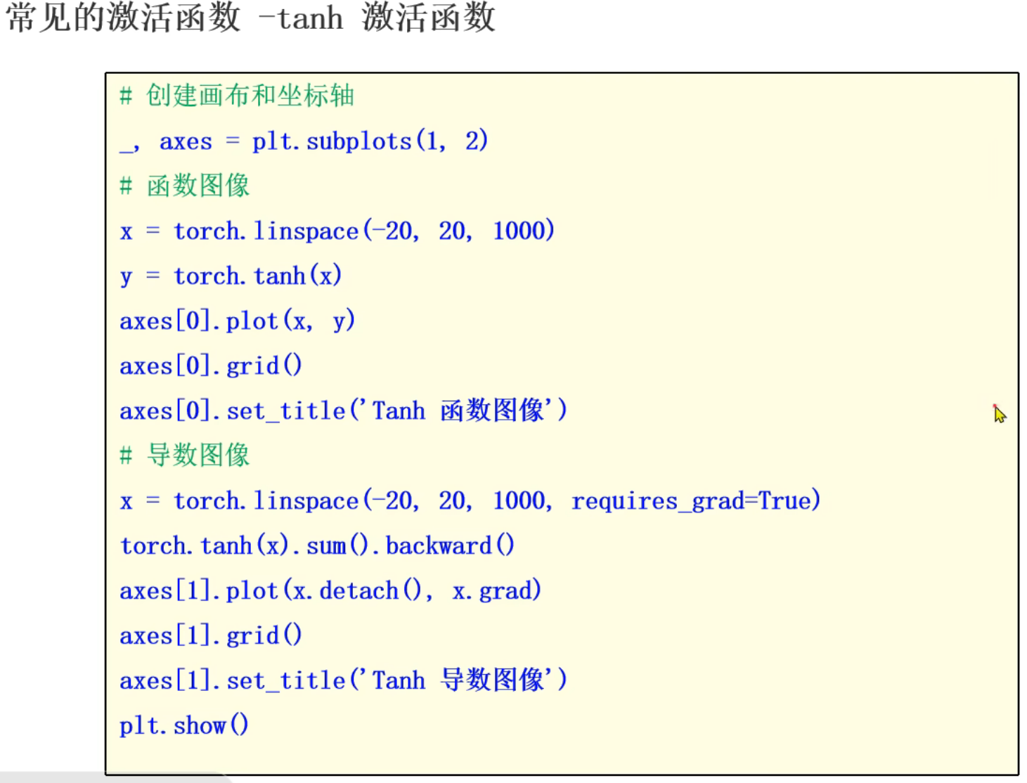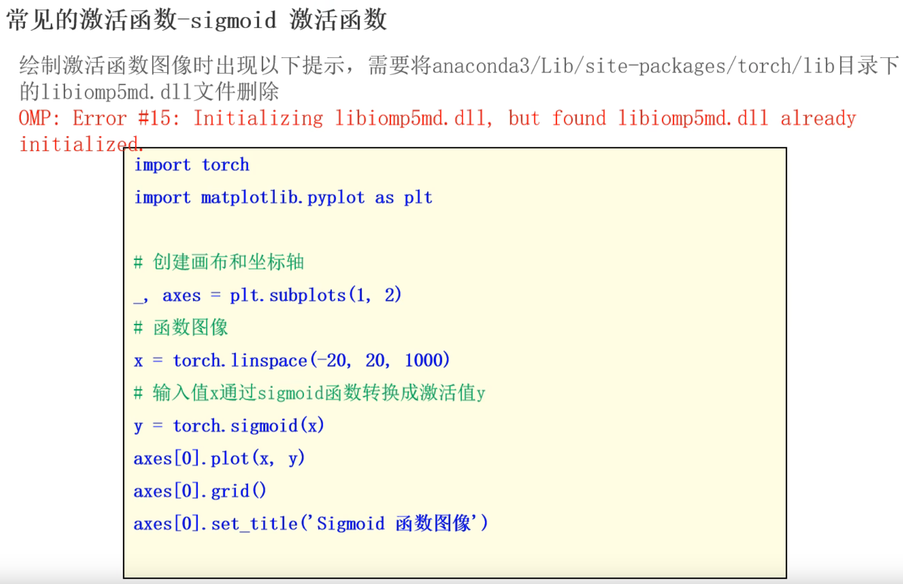 这里后续是代码演示但是视频不全,我根据下一个视频中Tanh激活函数的代码返回来敲了一下