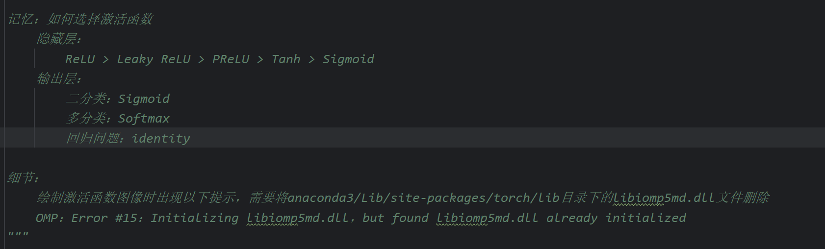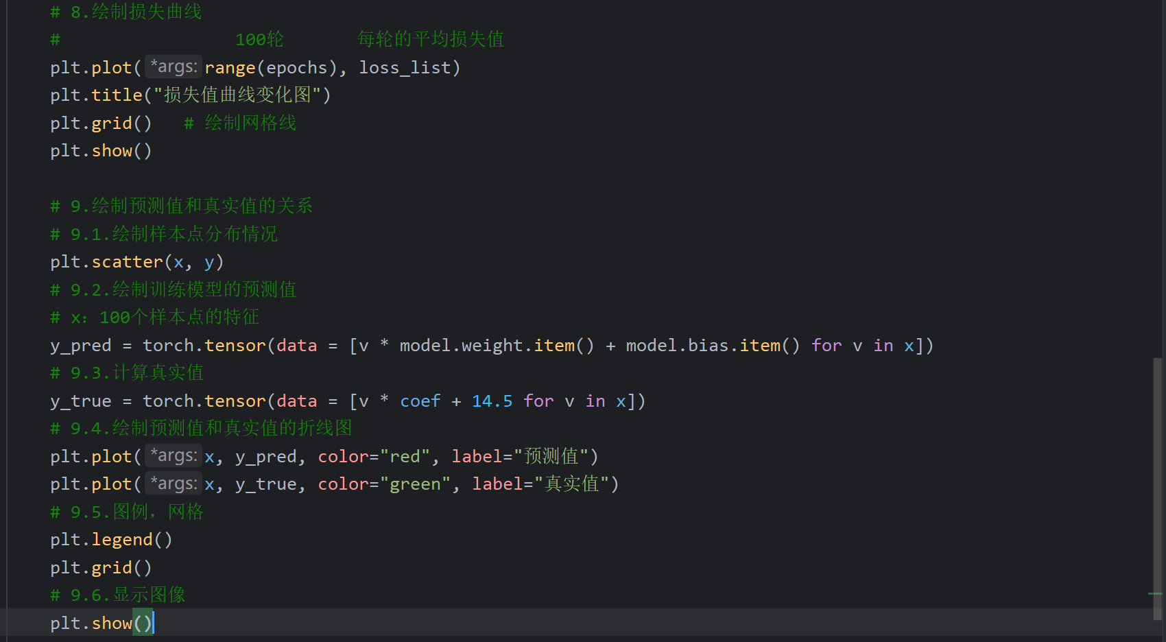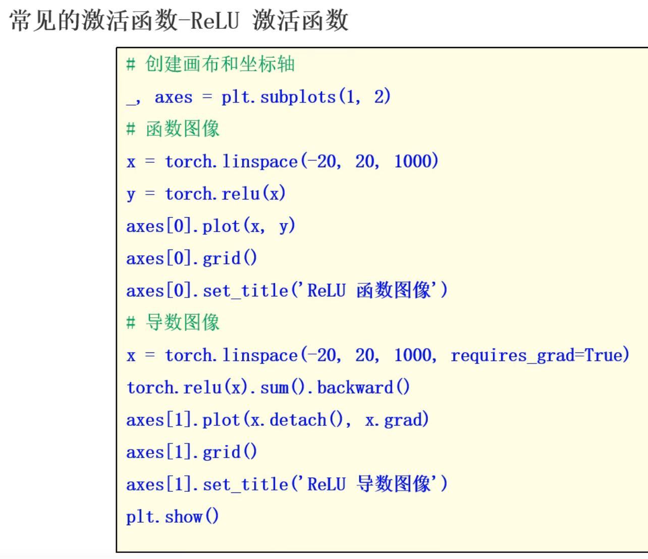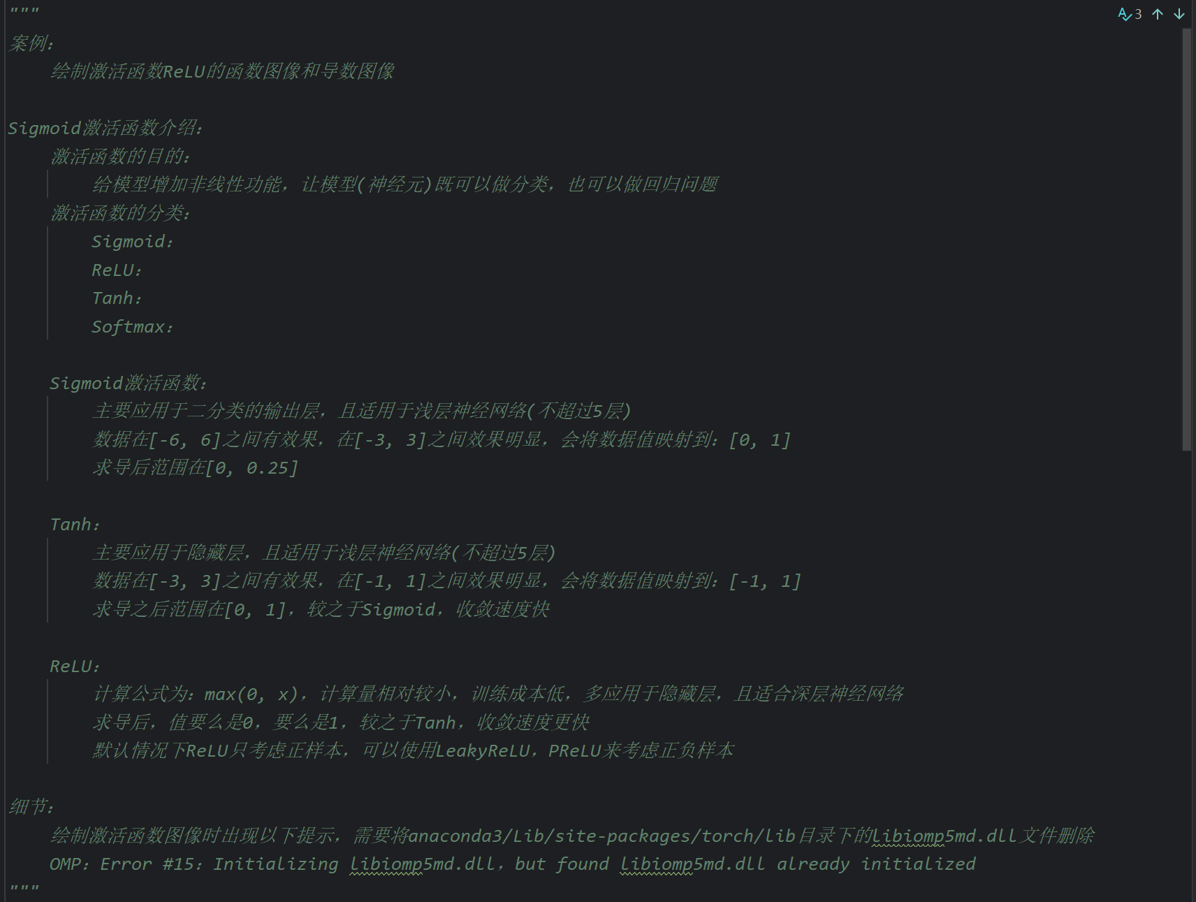 这里后续是代码演示但是视频不全,我根据下一个视频中Tanh激活函数的代码返回来敲了一下