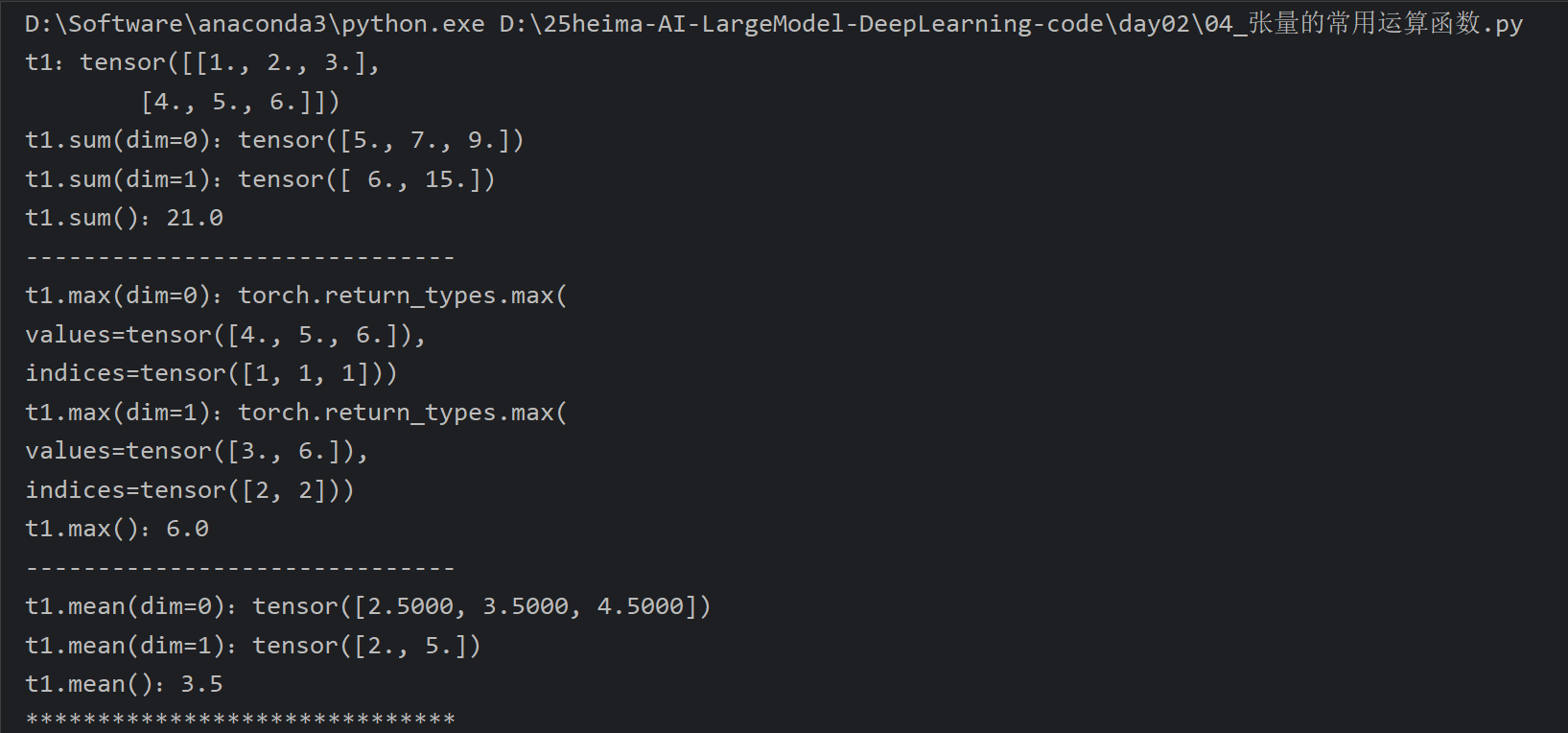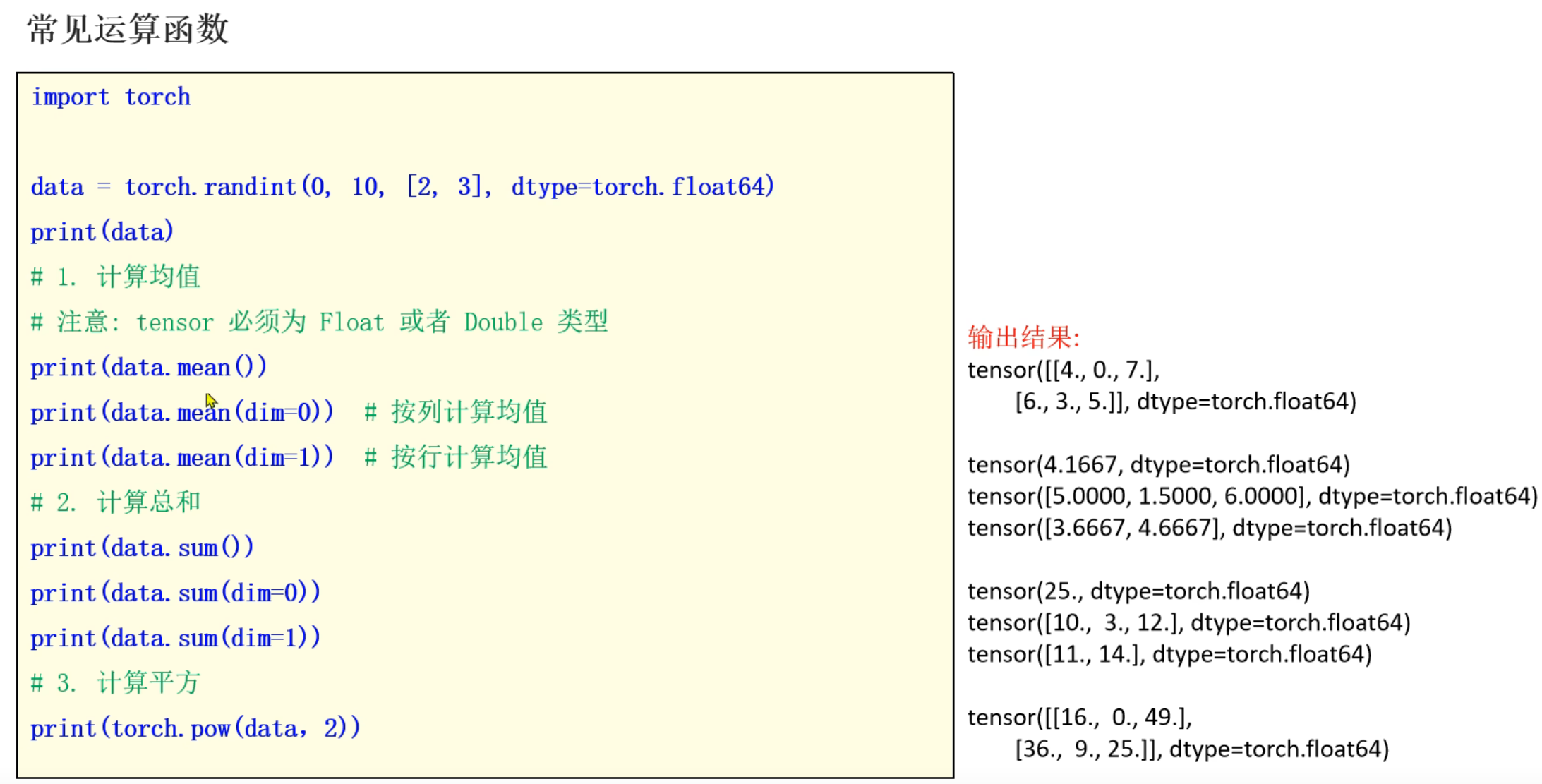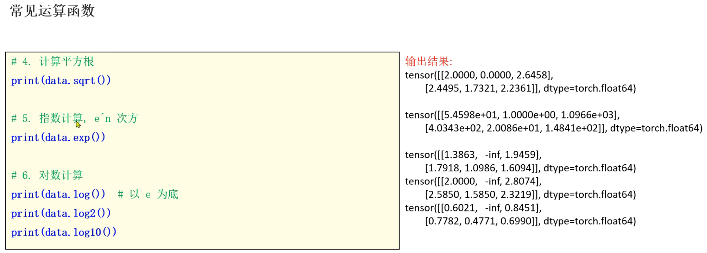 5、张量的常用运算函数