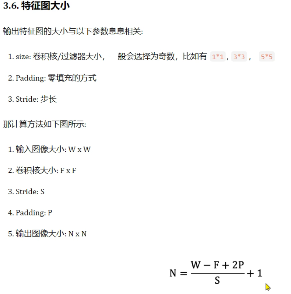 下面笔记中的W是原图大小,老师打错了。也可以按照上面的解释,W是输入图像大小,N是输出图像大小