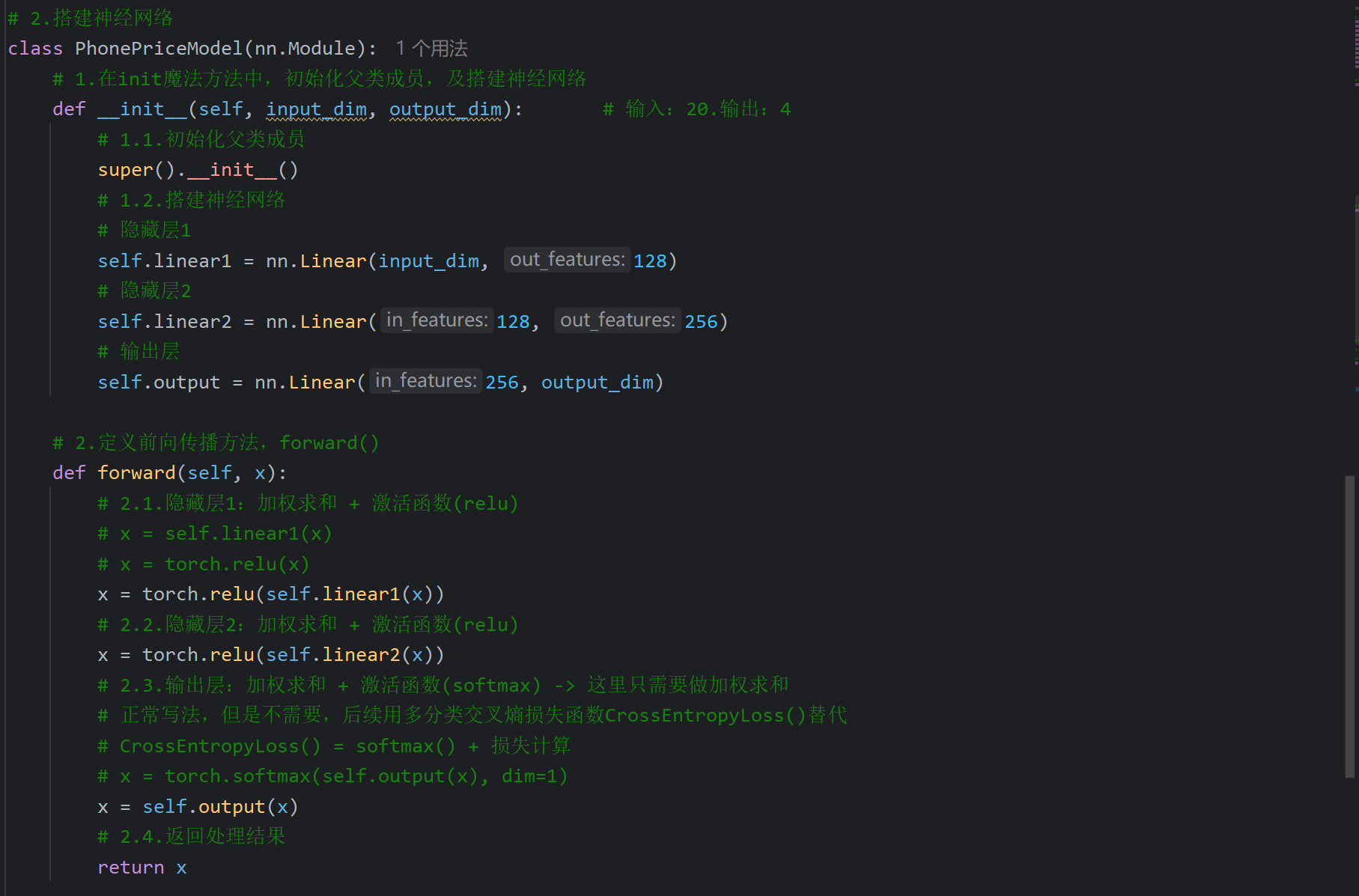 2、ANN案例_手机价格分类_搭建神经网络