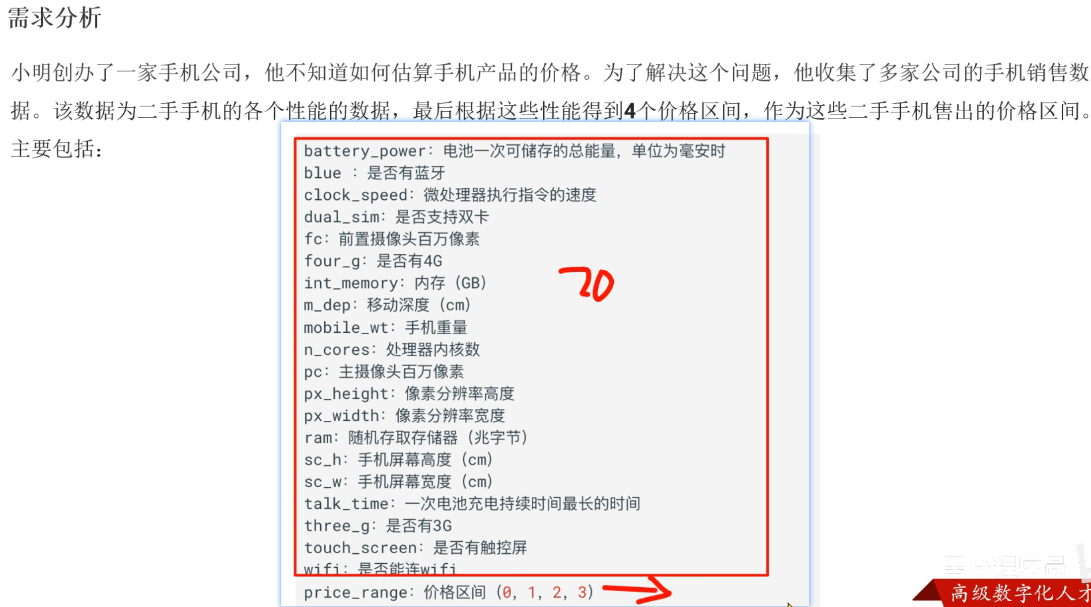 19、ANN案例_手机价格分类_需求介绍