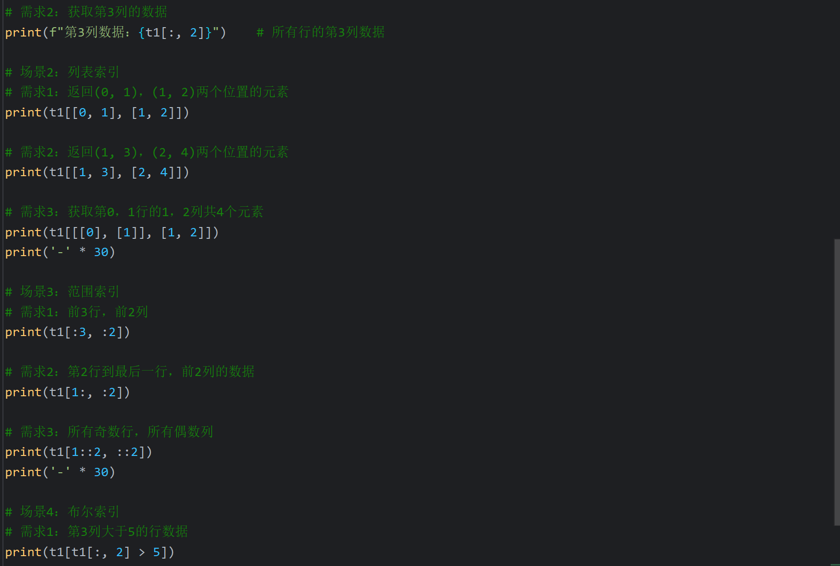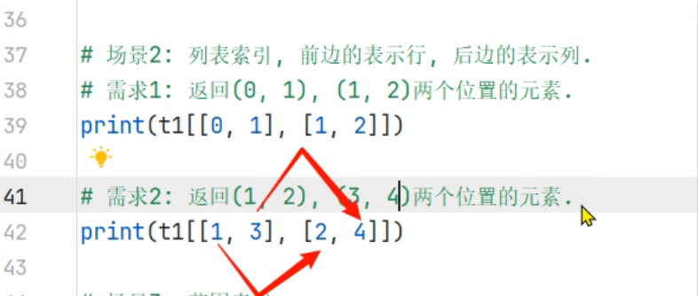 列表索引:那前面行的索引和后面列的索引进行匹配