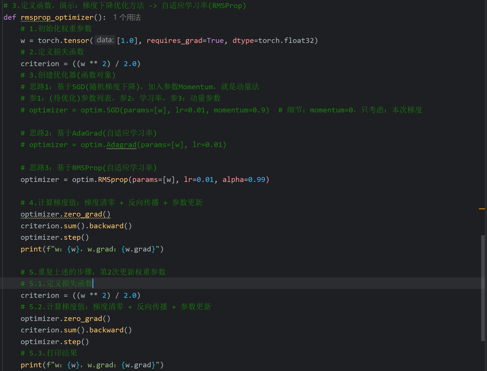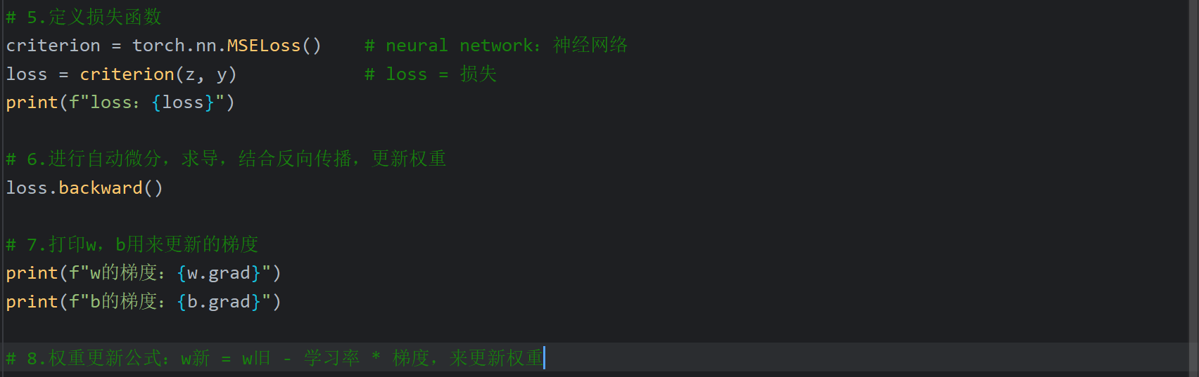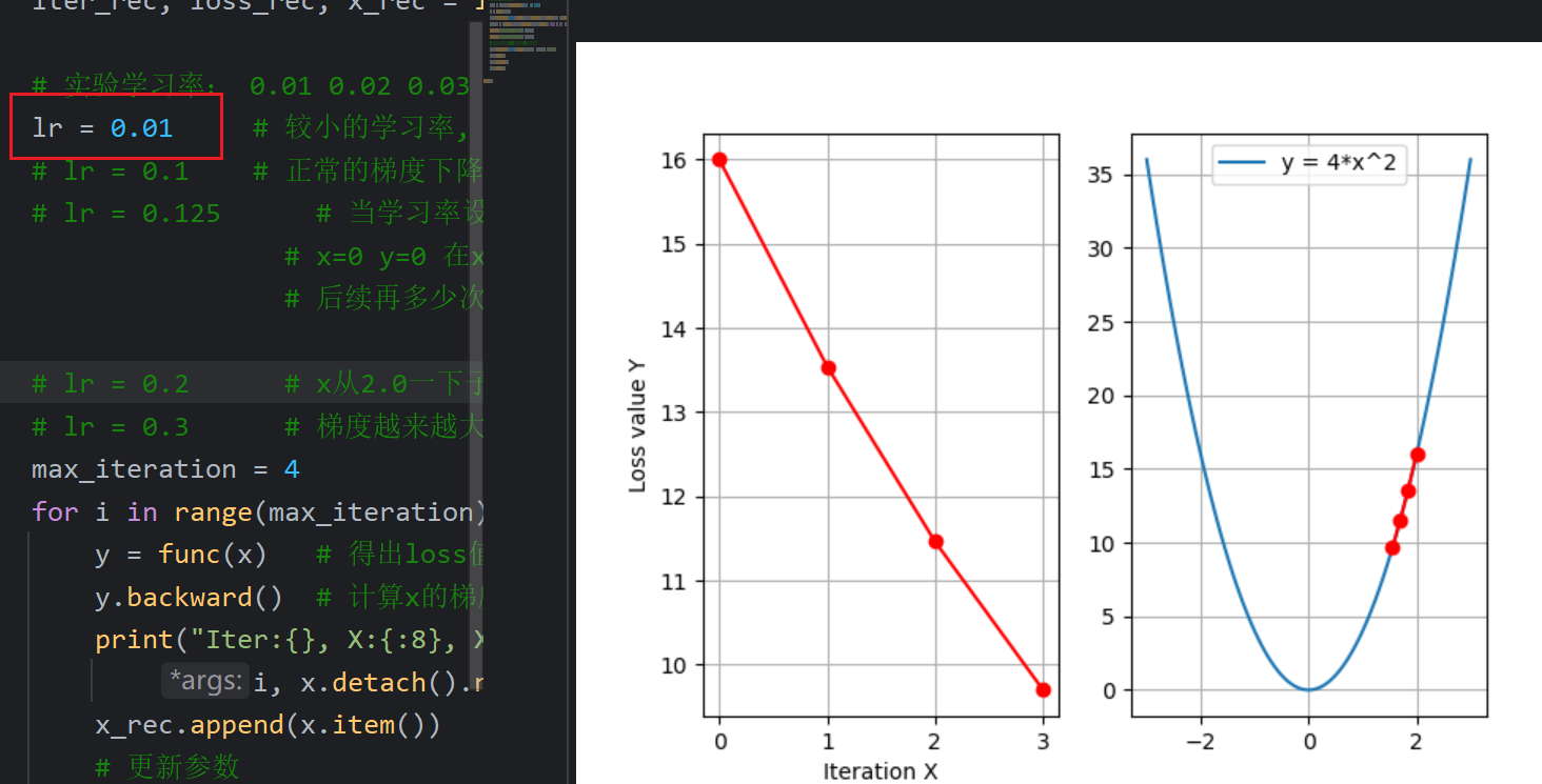 ppt中代码的x指的是权重w,y指的是损失函数loss,等下自己写代码会改一下字母