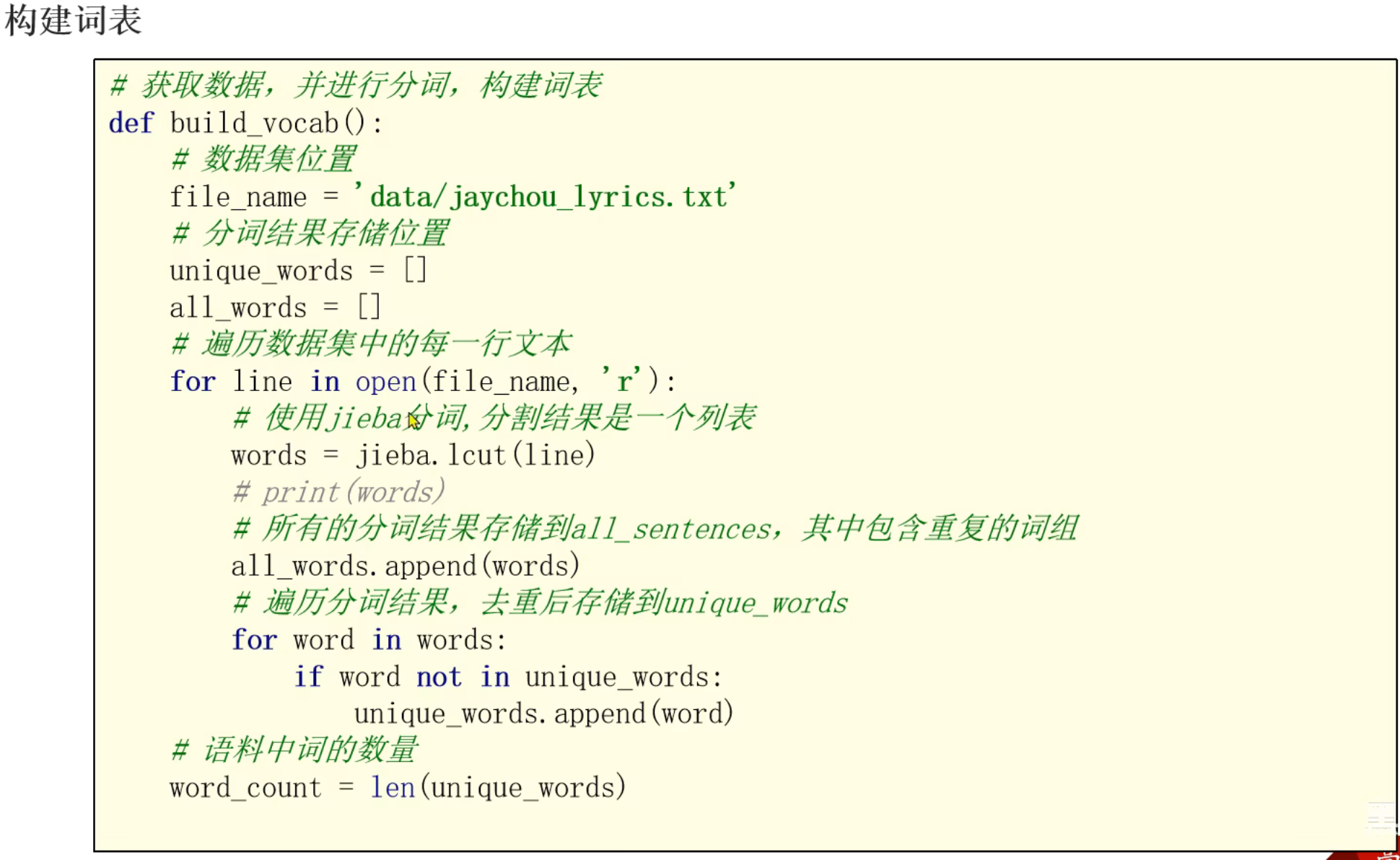13、RNN_AI歌词生成器案例_构建词表