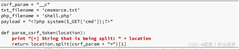 为了更好地理解IndexError,在利用脚本的返回指令之前,parse_csrf_token函数中添加一个print语句: