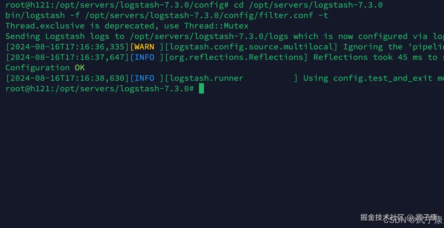 bin/logstash -f /opt/servers/logstash-7.3.0/config/filter.conf -t