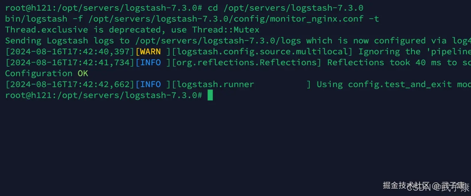 bin/logstash -f /opt/servers/logstash-7.3.0/config/monitor_nginx.conf -t