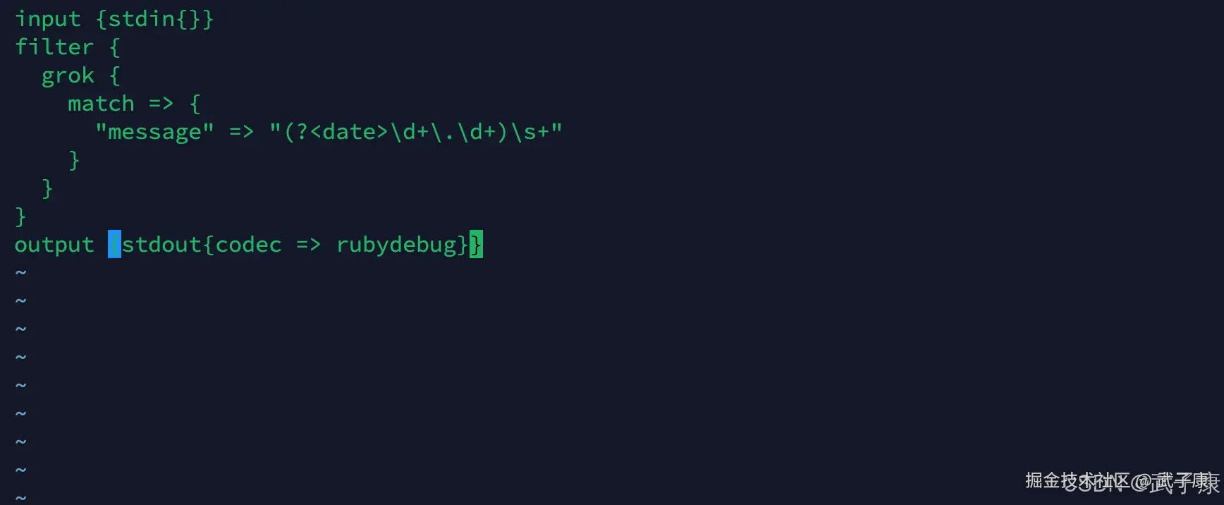 output {stdout{codec => rubydebug}}