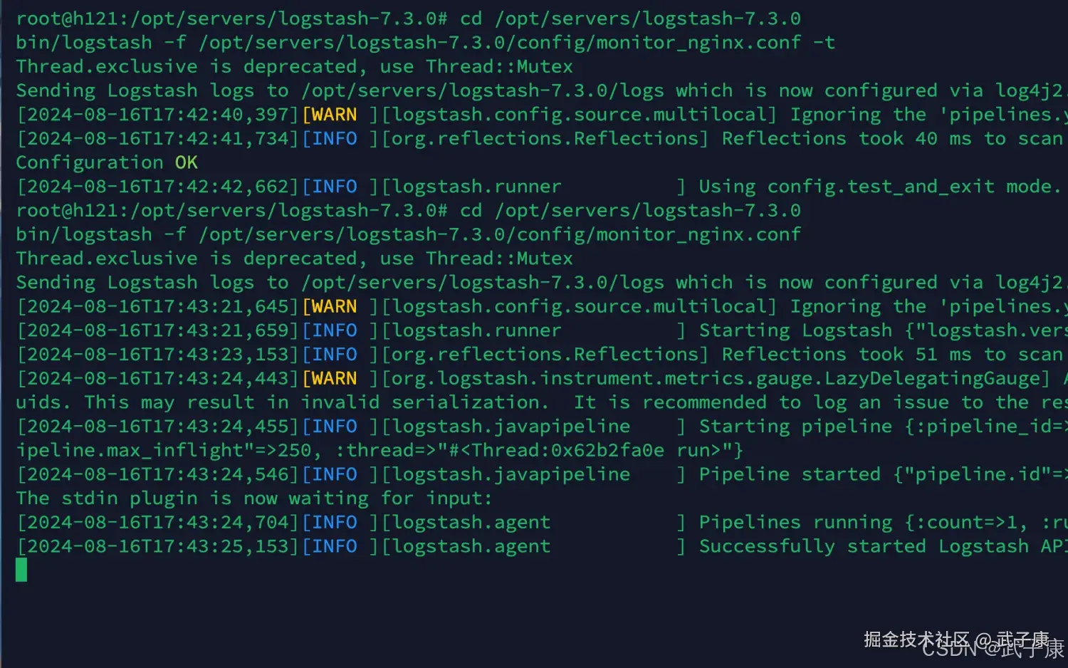 bin/logstash -f /opt/servers/logstash-7.3.0/config/monitor_nginx.conf