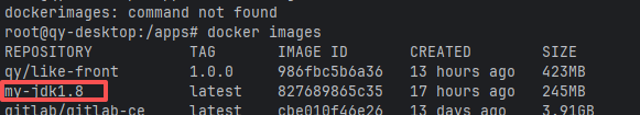 假设我们现在通过Docker images查看到我们有一个my-jdk1.8的镜像,但是这个镜像中我们只有一个jdk环境,我们现在需要新增一个比如ffmpeg的环境依赖时,有两种方法,一种是修改原有Dockerfile一种是使用"my-jdk1.8"镜像为基础镜像新增后续环境即可。