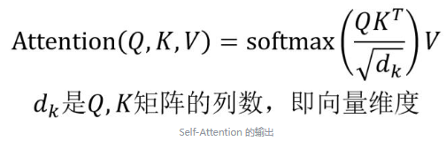 Self-Attention 的输出:得到矩阵 Q, K, V之后就可以计算出 Self-Attention 的输出了,计算的公式如下: