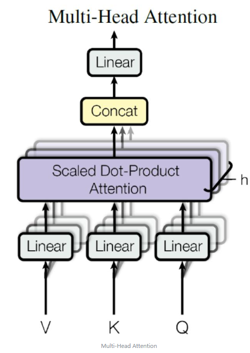 Multi-Head Attention 是由多个 Self-Attention 组合形成的,下图是论文中 Multi-Head Attention 的结构图。
