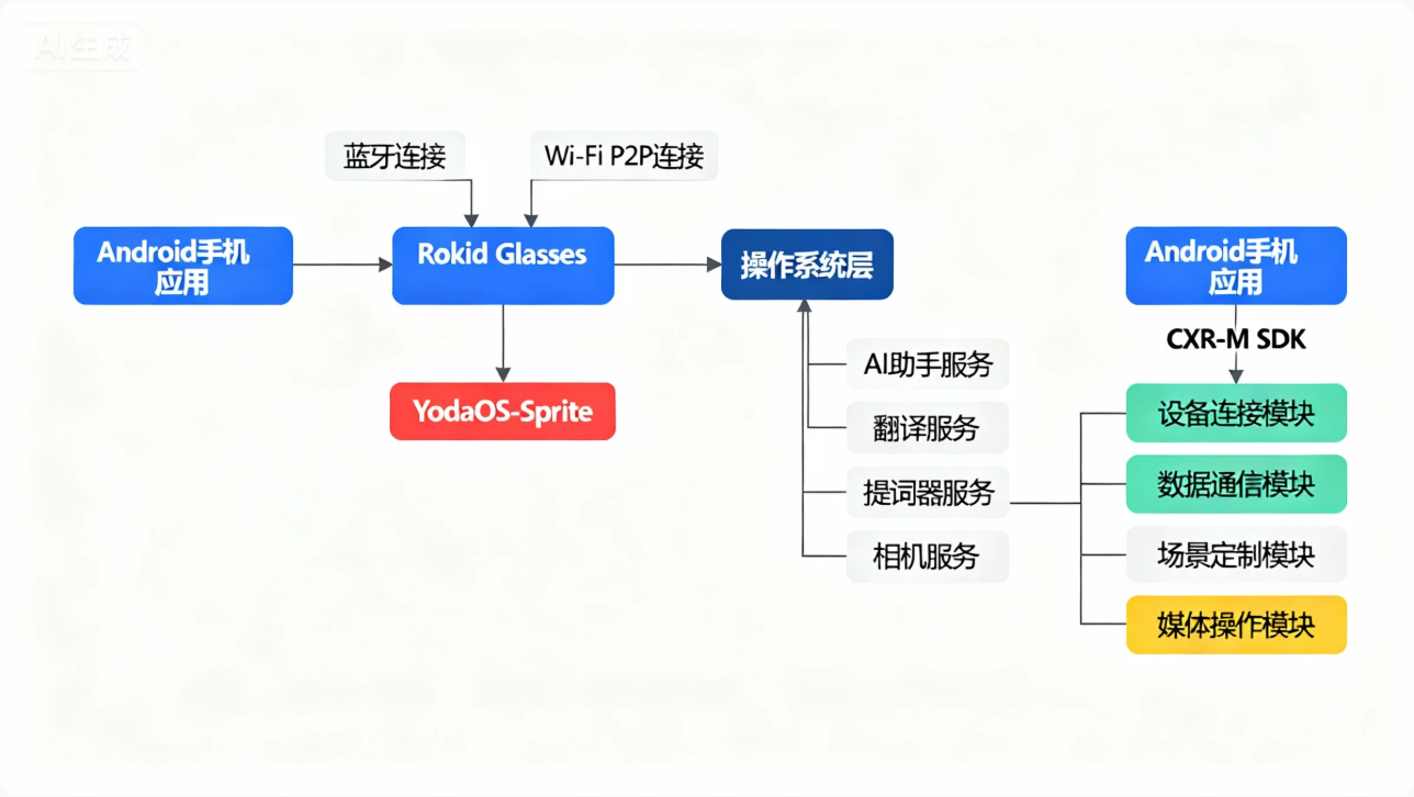 SDK通过蓝牙建立基础连接,Wi-Fi P2P实现高带宽数据传输,支持开发者快速接入YodaOS-Sprite操作系统定义的各类交互场景。目前SDK仅提供Android版本,要求minSdk≥28,充分适配现代移动设备性能需求。