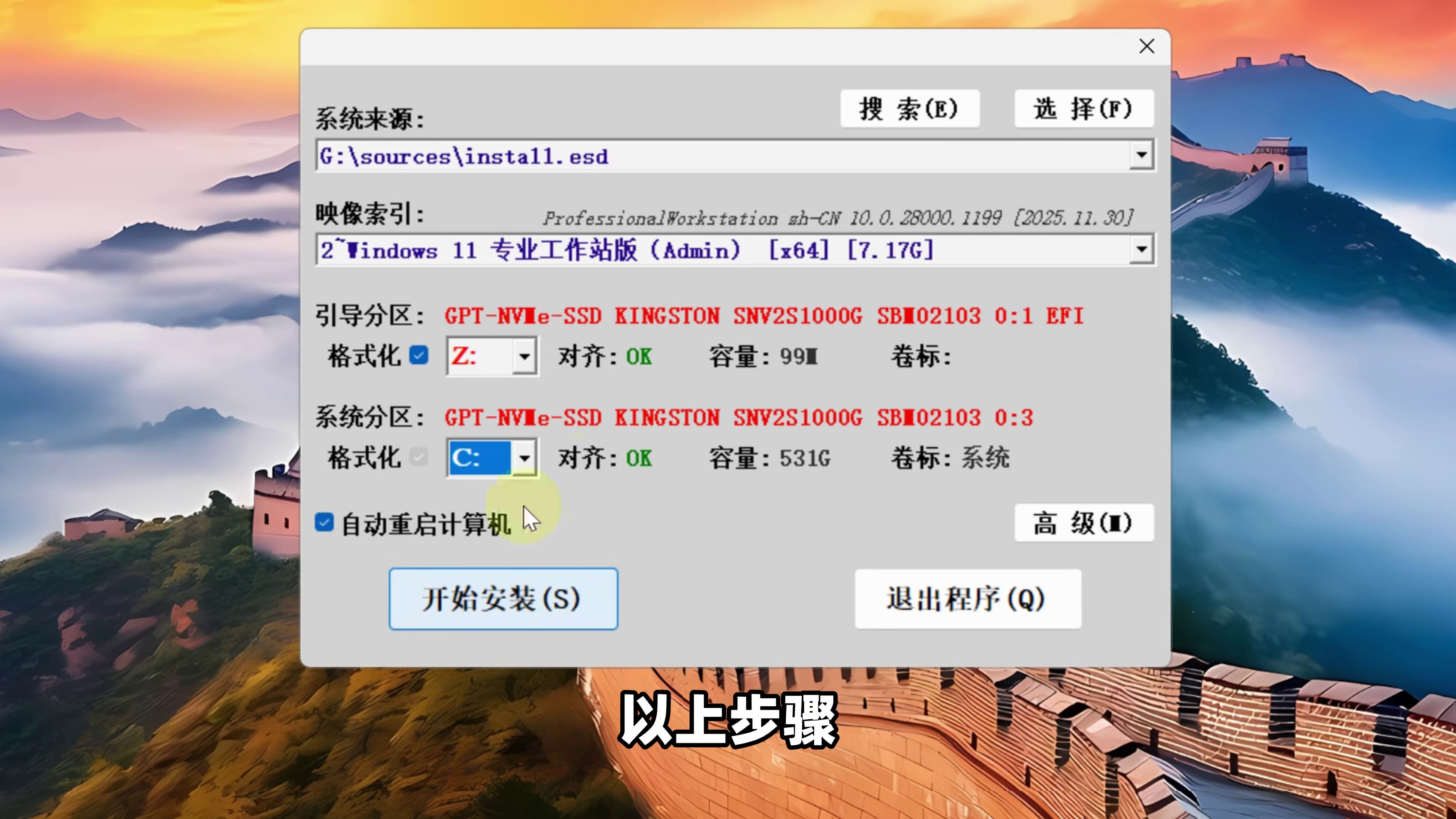 选择安装盘符(支持本地硬盘或移动硬盘)