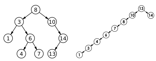 最差情况下:二叉搜索树退化为单支树(或者类似单支),其平均比较次数为:O(N)。