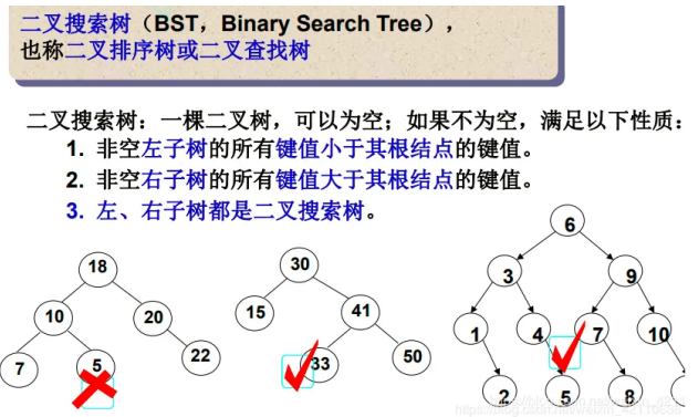 二叉搜索树又称为二叉排序树,它或者是一棵空树,或者是具有以下性质的二叉树:
