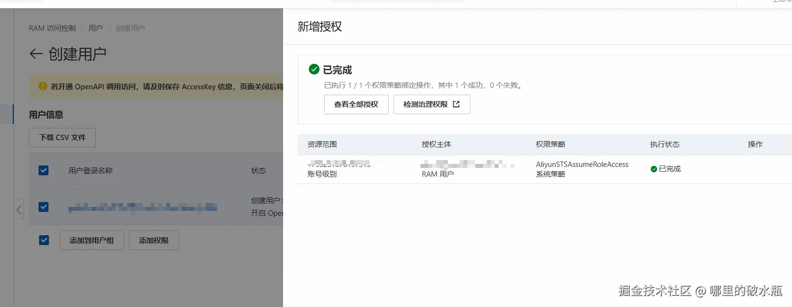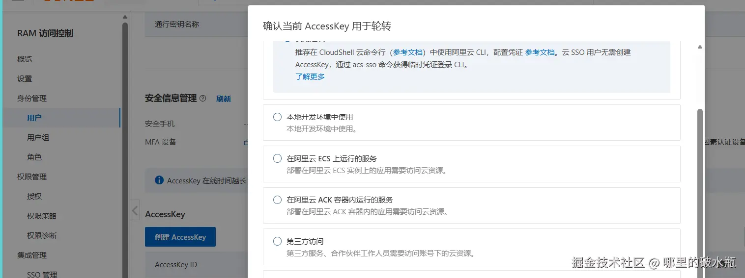 创建时,会展示 access-key 和 secret-key,注意 secret-key 只会展示一次。