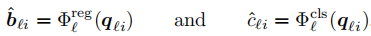 分别预测每个目标查询对应的边界框参数和类别标签: