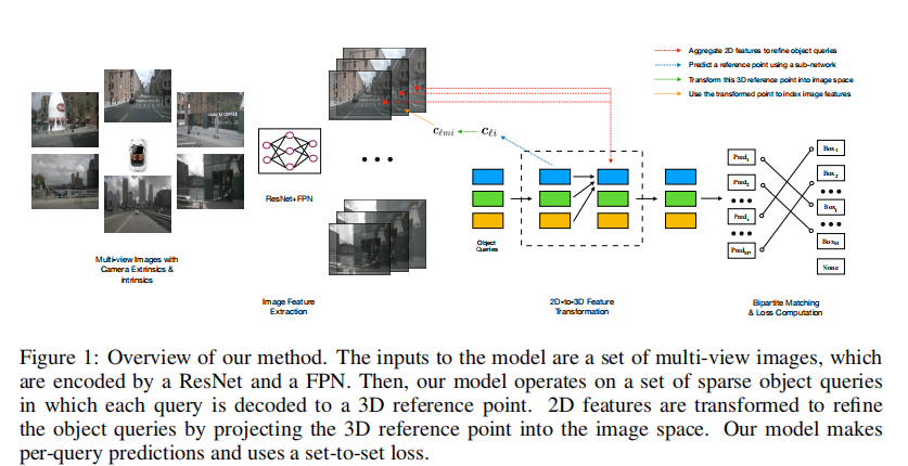 DETR3D 的架构包含三个关键组件(如图 1 所示):
