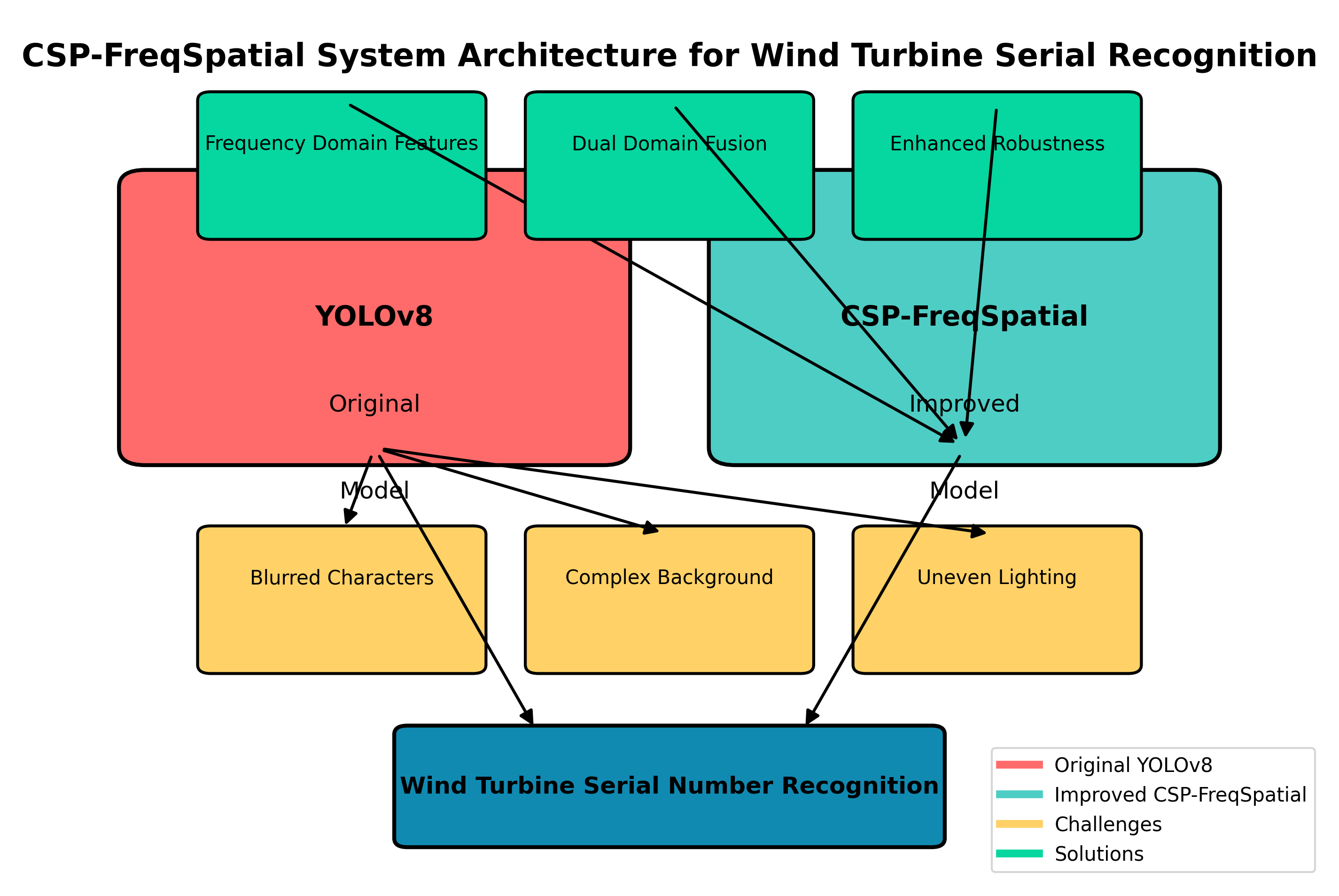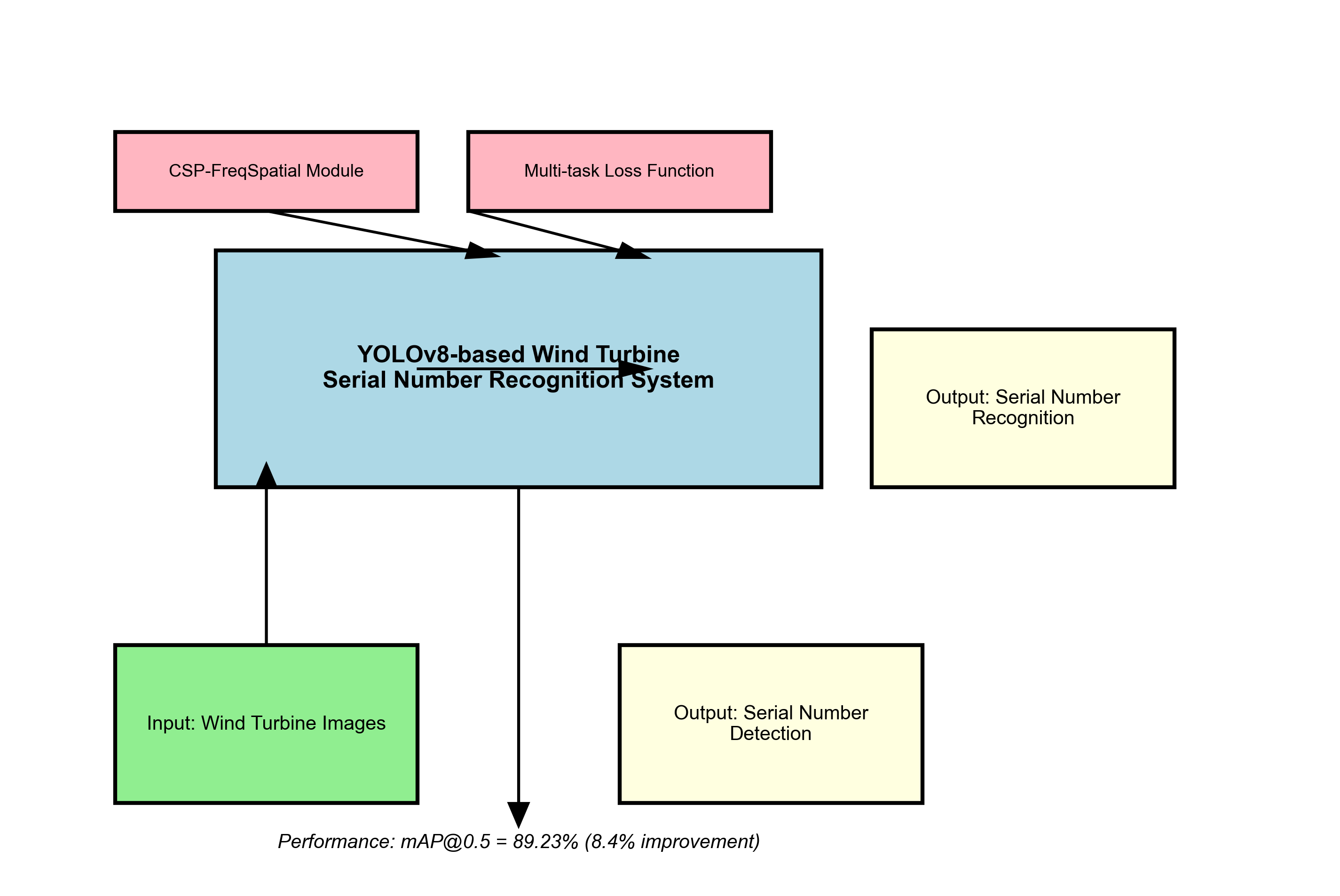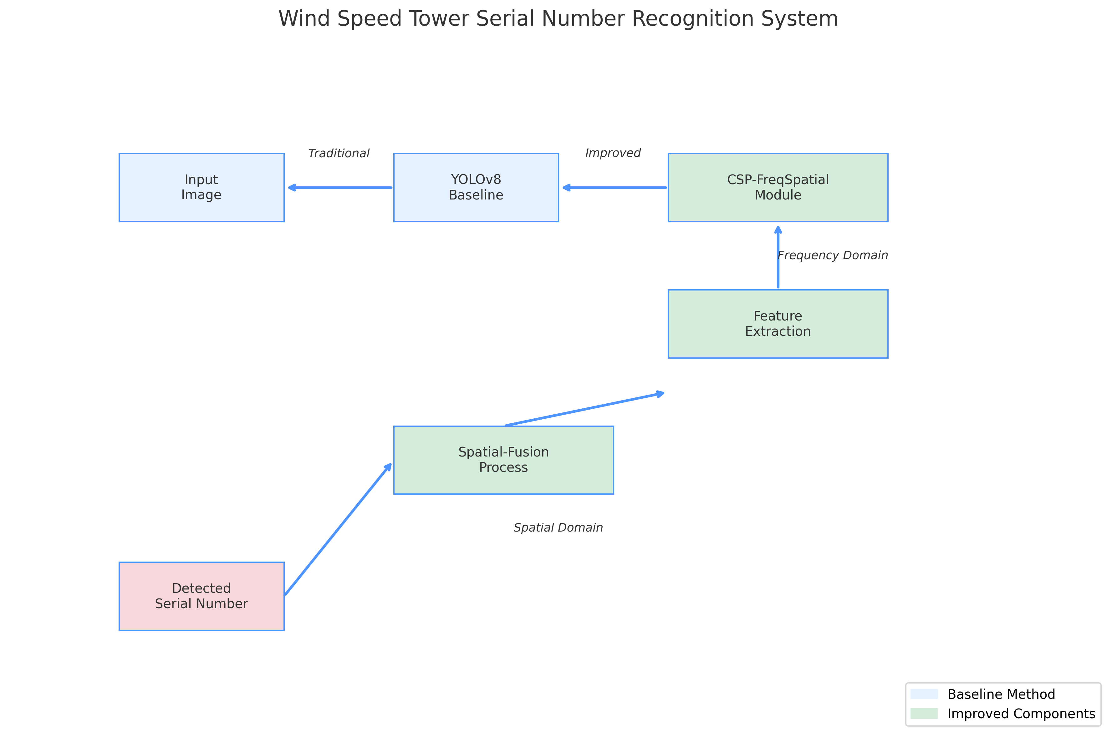 针对上述问题,我们提出了一种基于改进YOLOv8的风速塔设备序列号自动识别与定位系统。该系统通过引入CSP-FreqSpatial模块,有效提升了模型在复杂环境下的识别精度和鲁棒性,实现了风速塔设备序列号的自动识别与定位,为风电场的智能化运维提供了有力支持。