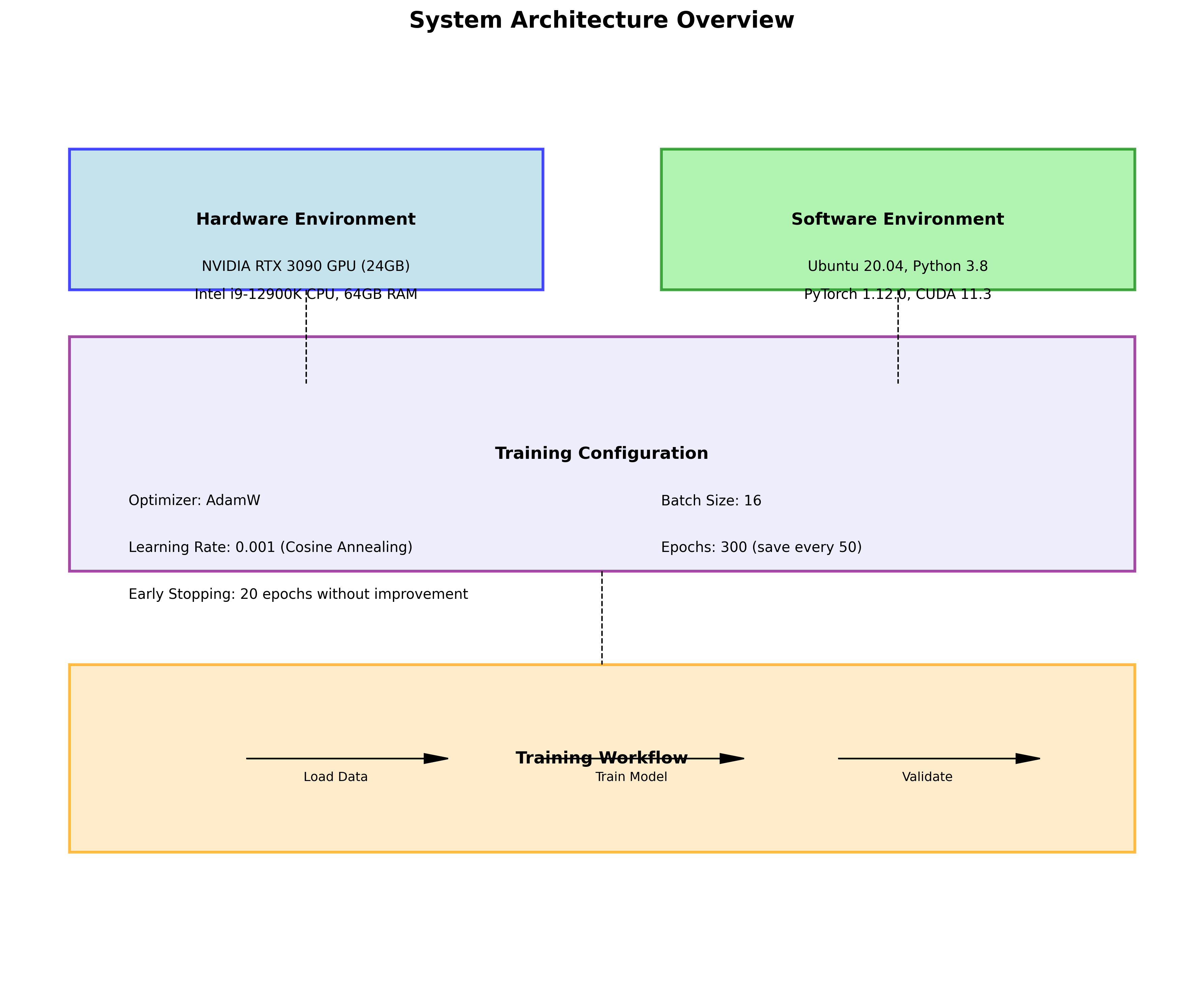 - 硬件环境:NVIDIA RTX 3090 GPU,24GB显存,Intel i9-12900K CPU,64GB内存。