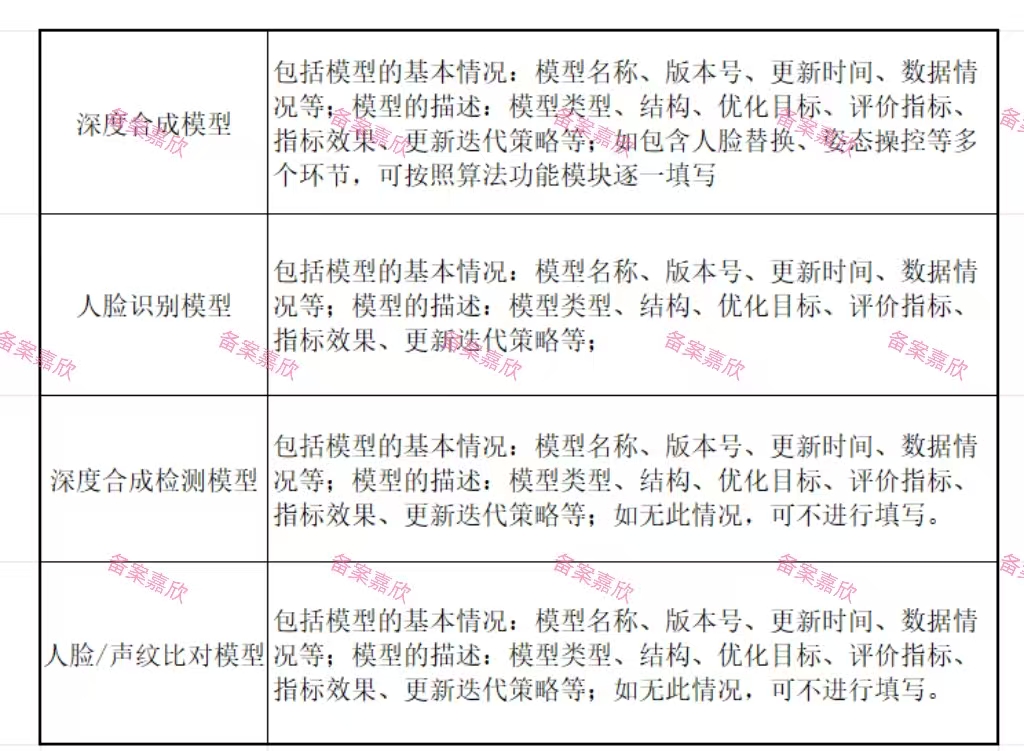 - 算法模型在算法流程中指的是应用统计学习、深度学习等机器学习方法的节点,如n-gram、GAN等,基于规则的或人工定义的方法也应在此处进行描述。
