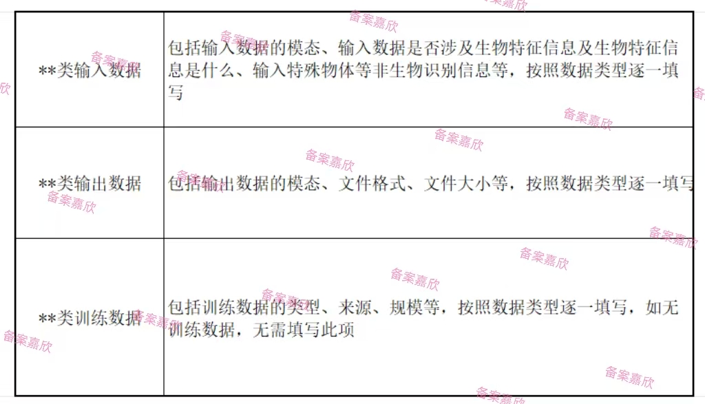 - 对于文本、语音类的生成合成应描述输入数据的语种和输出数据的语种;