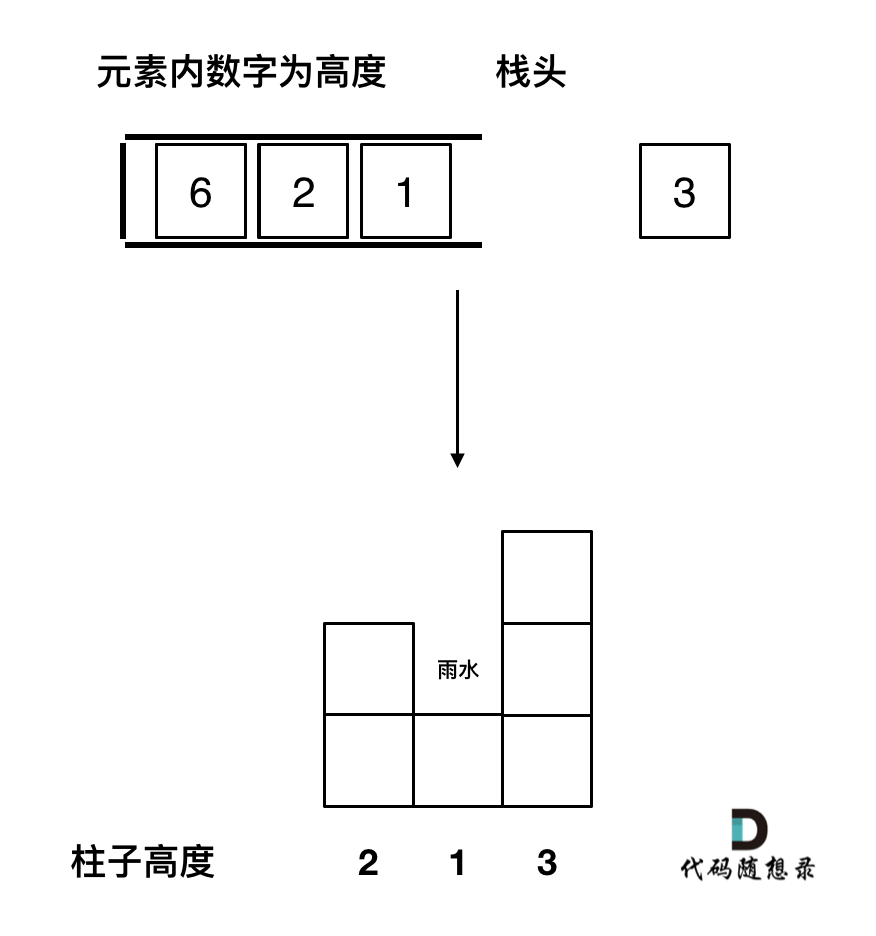 l来说,它能装水的公式本应是:\\min(\\text{左边最高}, \\text{右边最高}) - \\text{当前高度}。 -