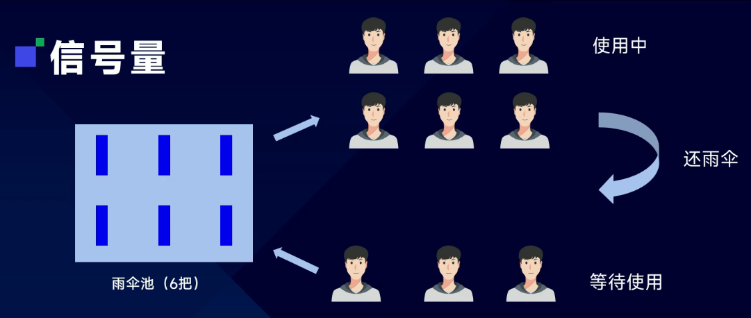- 尝试获取信号量:若信号量可用(值>0),则信号量值减1,返回